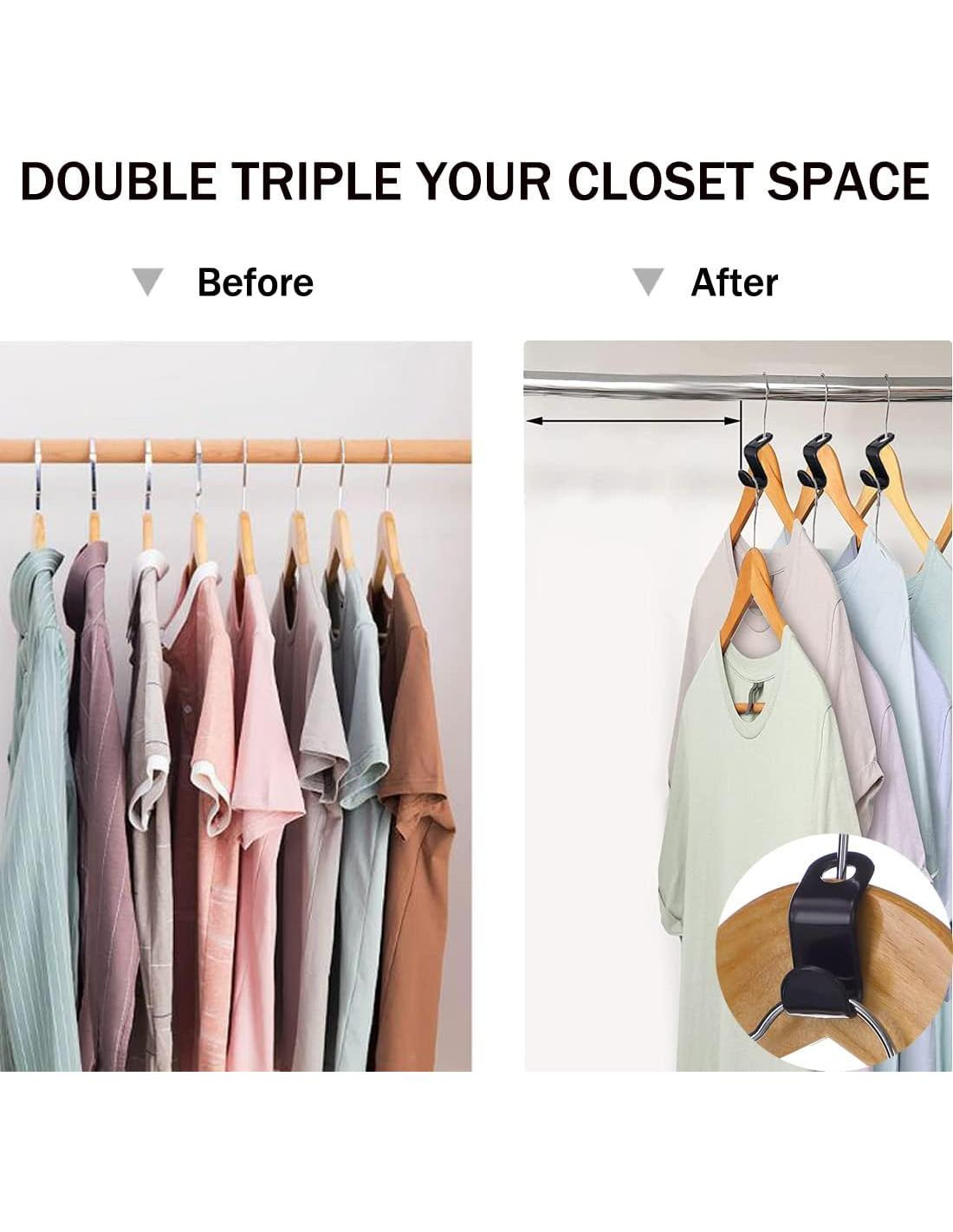 - GANCHOS PREMIUM: Hechos de plástico premium, livianos pero resistentes, sin ningún mal olor, sin ningún daño para tu familia. El borde suave no rasguñará tu ropa ni tu piel. Fuerte capacidad de carga, estos conectores de perchas tienen una fuerte capacidad de carga, pueden sostener incluso la ropa más pesada en tu armario, pueden colgar una fila de 20 prendas al mismo tiempo, hasta 5 kg (11 lb). Duraderos y no fáciles de deformar.