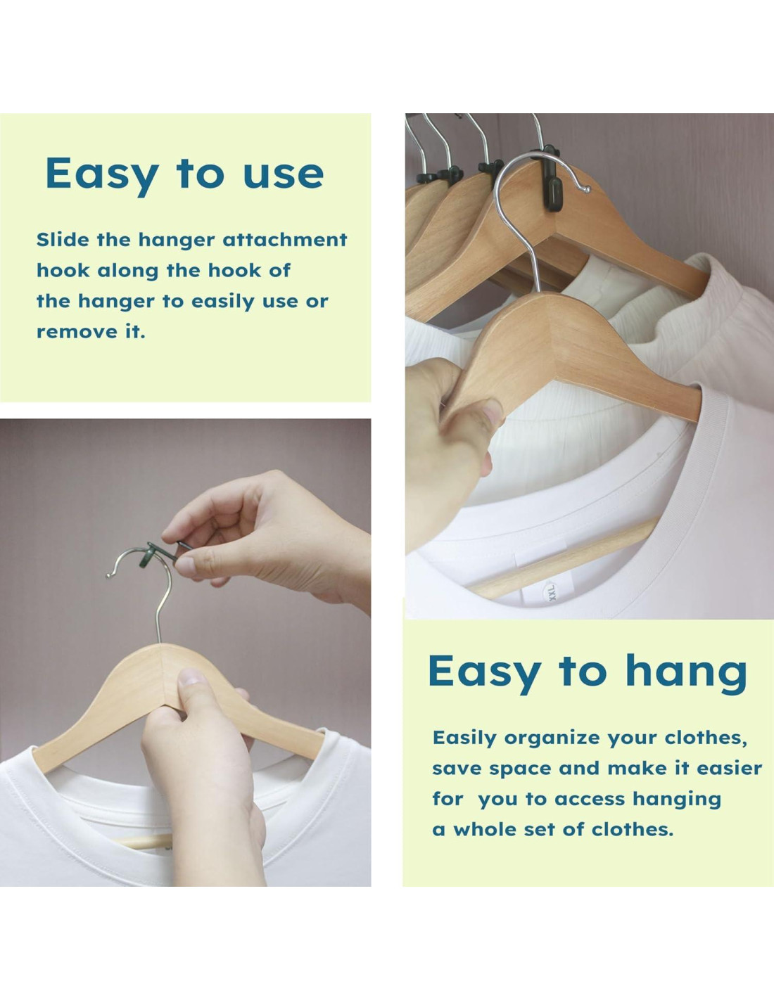 - [Versatilidad] : Los ganchos para perchas son compatibles con la mayoría de los tipos de perchas estándar, incluyendo perchas de plástico, madera y metal, ofreciendo flexibilidad en la organización de varios artículos de ropa.