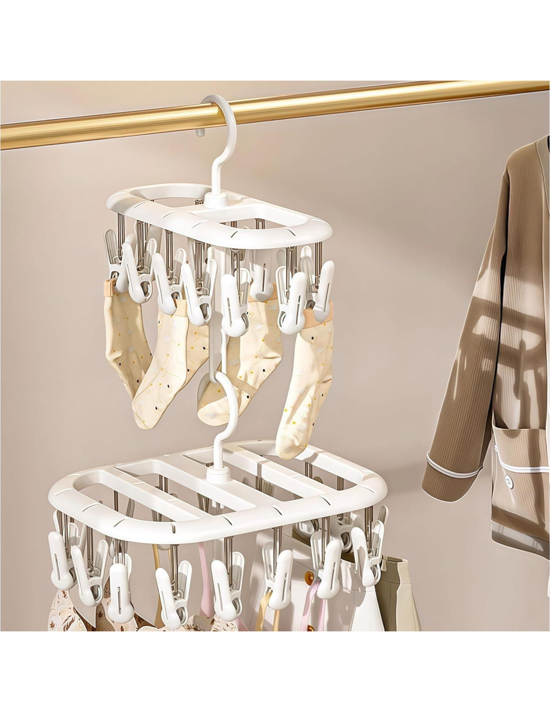 - Secado Versátil para Todos los Artículos: Una verdadera solución todo en uno, este perchero multifuncional para secar ropa con clips es ideal para secar calcetines, toallas, pañales, sujetadores, percheros para secar ropa de bebé, ropa interior, guantes, pañuelos y otros artículos ligeros