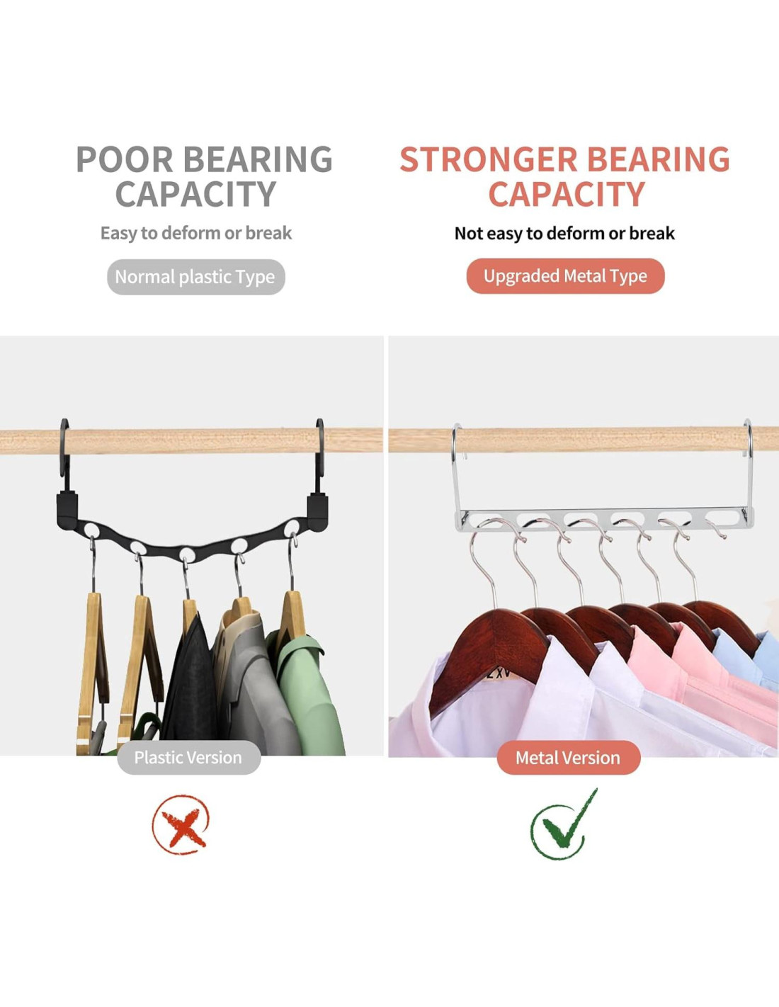 - MAXIMIZA EL ESPACIO DEL ARMARIO Y ALMACENAMIENTO - Las perchas ahorradoras de espacio son imprescindibles cuando tu armario está a reventar. Puedes almacenar múltiples prendas en una sola percha mágica. Cada organizador de perchas puede sostener de 6 a 12 prendas horizontal y verticalmente.