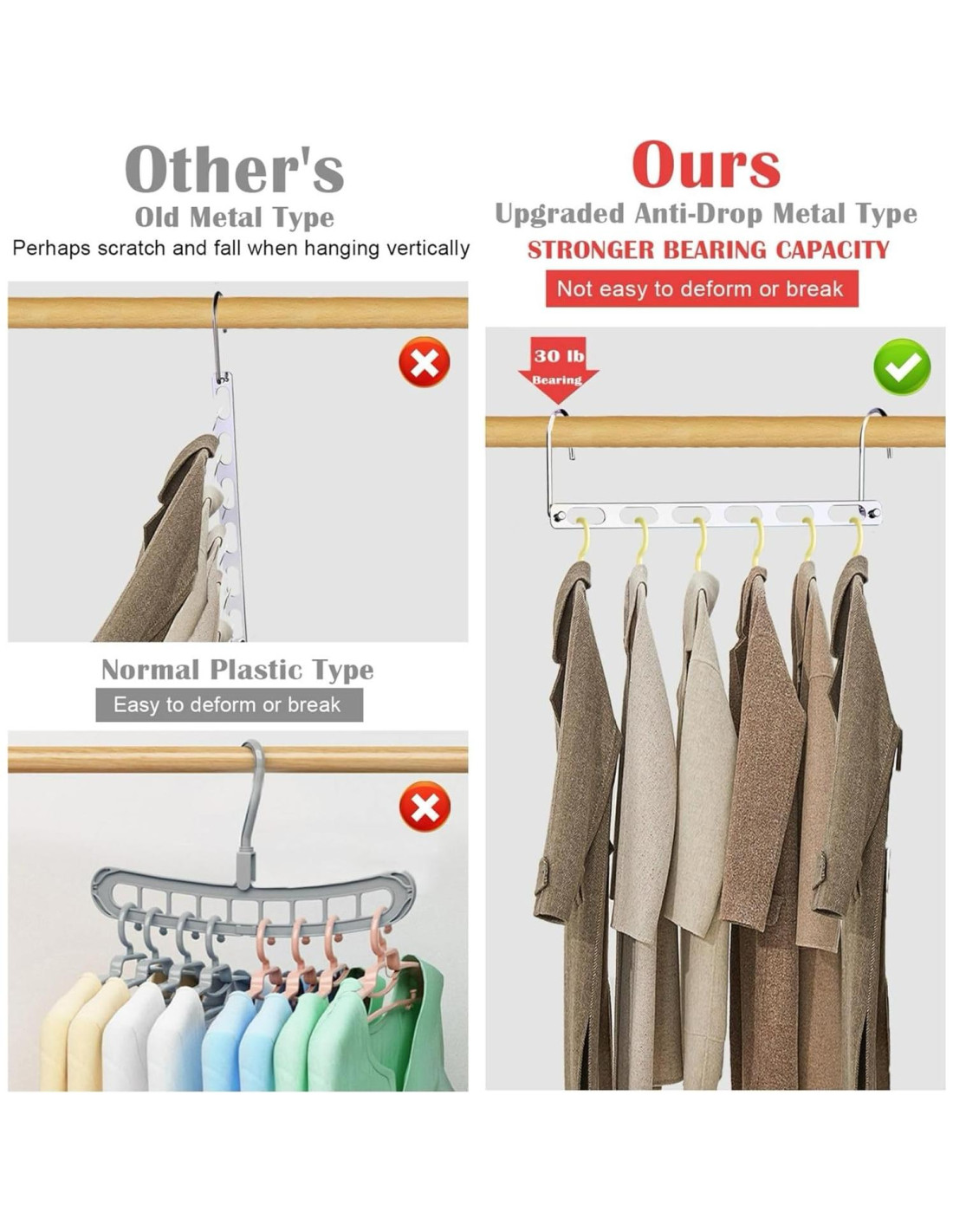 - Mayor capacidad de carga - Estas perchas de metal ahorradoras de espacio para ropa son mucho más fuertes que las de plástico regulares; las perchas ahorradoras de espacio pueden sostener más cosas que las habituales, y fácilmente pueden contener de 6 a 12 artículos como abrigos pesados, pantalones y camisas.