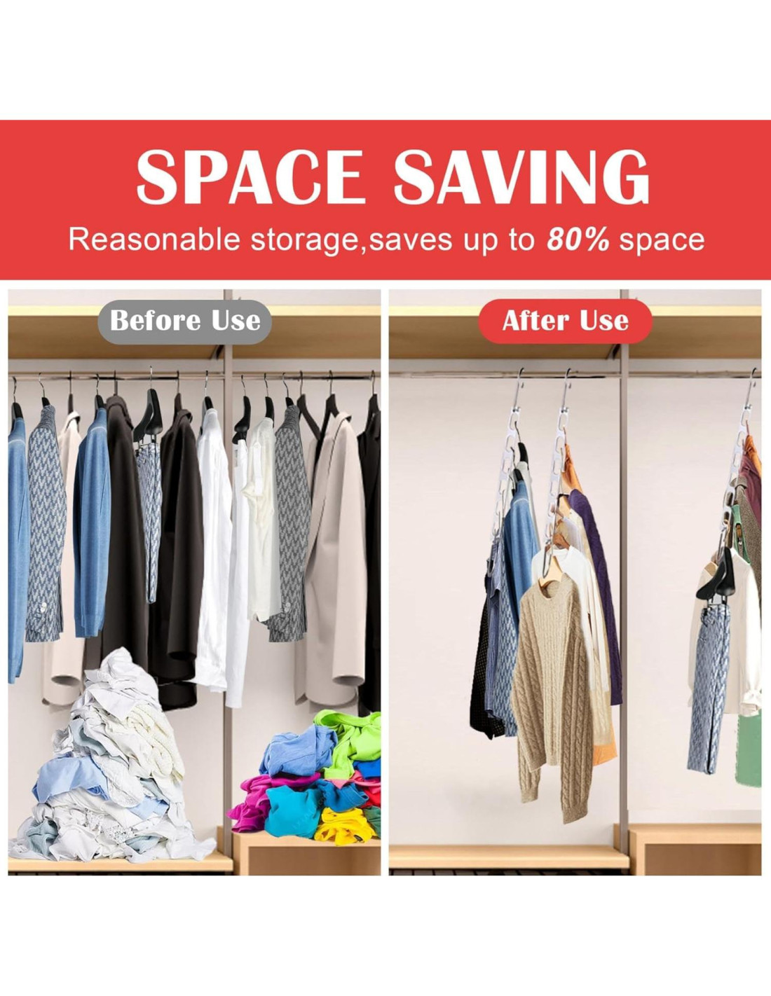 - Más ahorro de espacio - Estas perchas ahorradoras de espacio para ropa son imprescindibles. Si deseas tener un armario de moda y claro, puedes organizar la ropa según los tipos de perchas, colgando horizontalmente para exhibición y colgando verticalmente para ahorrar espacio. Puedes obtener más del 80% de ahorro de espacio al colgar verticalmente.