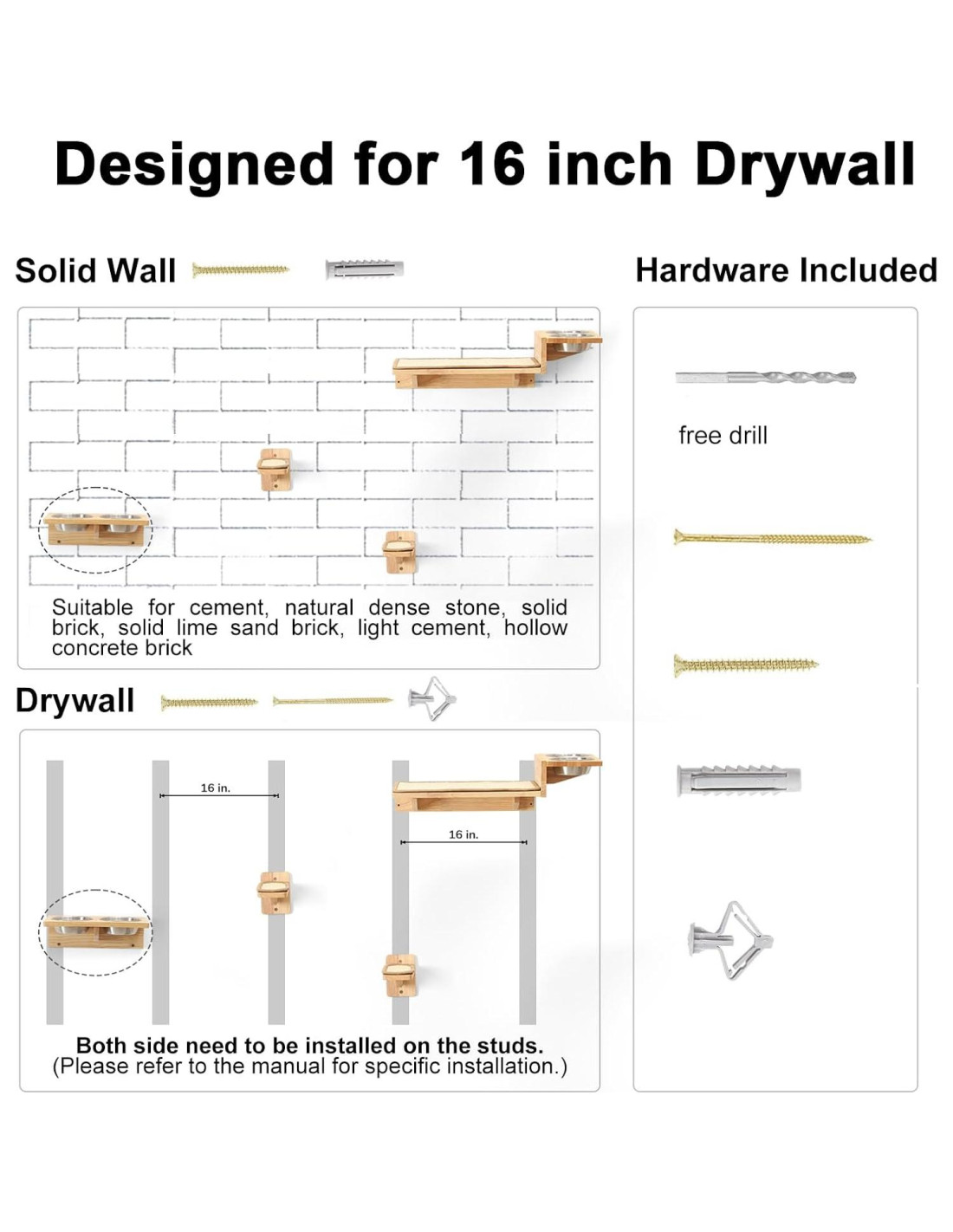 - SEGURO Y ESTABLE - Este conjunto de muebles para gatos está diseñado para paneles de yeso de 16 pulgadas, simplificando la instalación y maximizando la estabilidad. Pasó la prueba de carga, puede soportar fácilmente hasta 35 libras (15.88 kg). La estructura de escalada está cubierta con alfombra de sisal, antideslizante para un escalado seguro de los gatos.