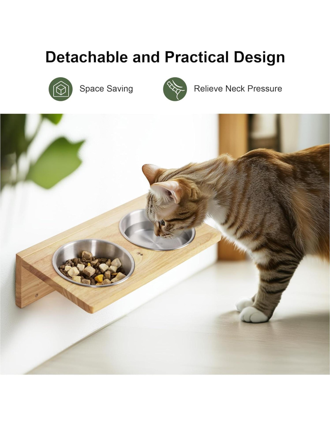 - COMBINACIÓN FLEXIBLE - El conjunto de muebles de pared para gatos contiene 3 partes funcionales, percha de pared para gatos, escalones para gatos y tazón para gatos montado en la pared. Según diferentes necesidades, la estación de alimentación se puede colocar por separado más cerca del suelo para cuidar a gatos ancianos o discapacitados, o la estación de alimentación y la estantería se pueden ensamblar juntas y colocar en alto para evitar que perros y gatos compitan por la comida.