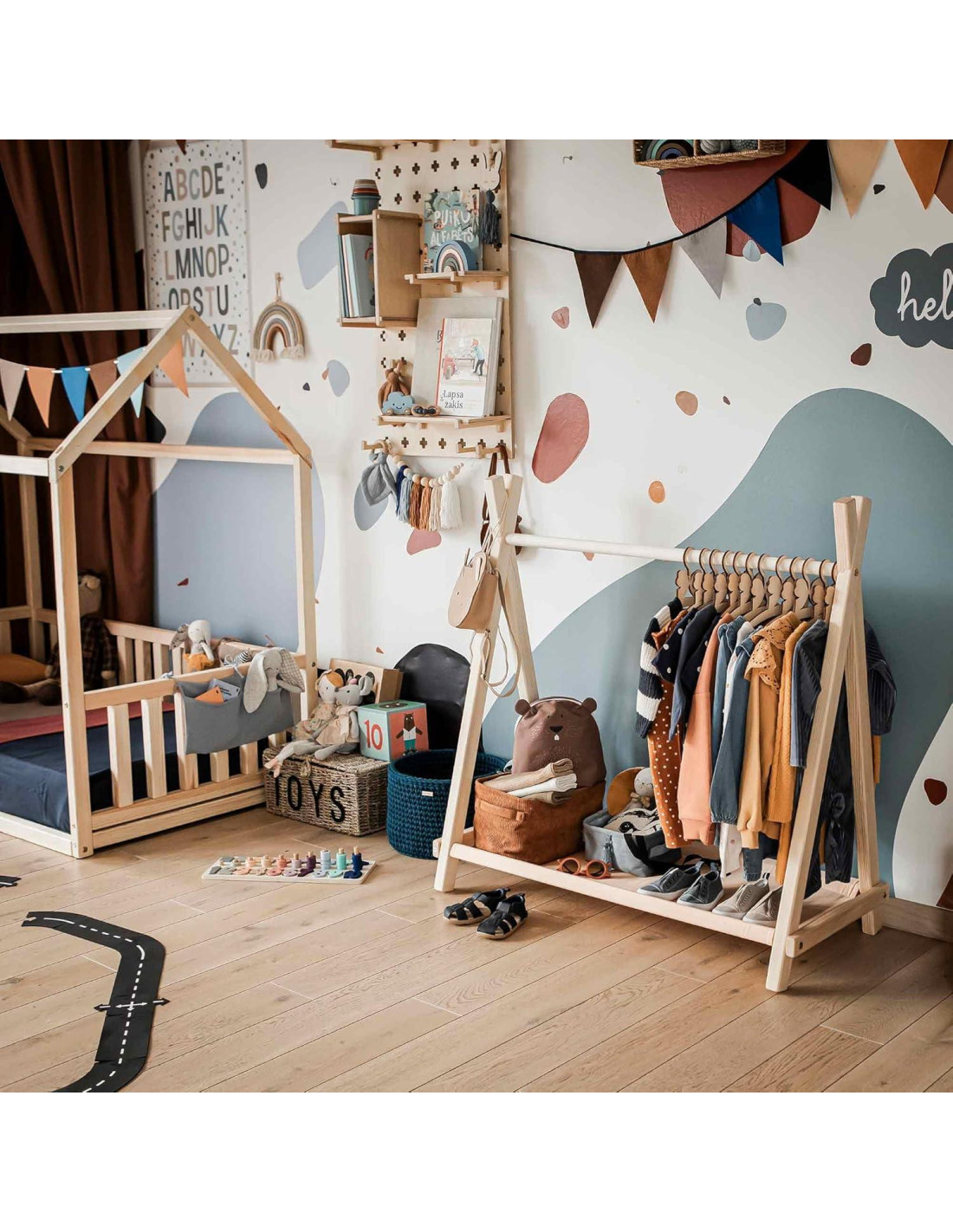 - FÁCIL DE MONTAR Y DURADERO - Hecho de madera de pino maciza y pintado con acuarela, este rack de ropa para niños se utilizará durante muchos años. Montar es realmente rápido y fácil, todas las herramientas necesarias están incluidas. La tela es de color beige. Este es un producto hecho a mano que se fabrica en la Unión Europea.