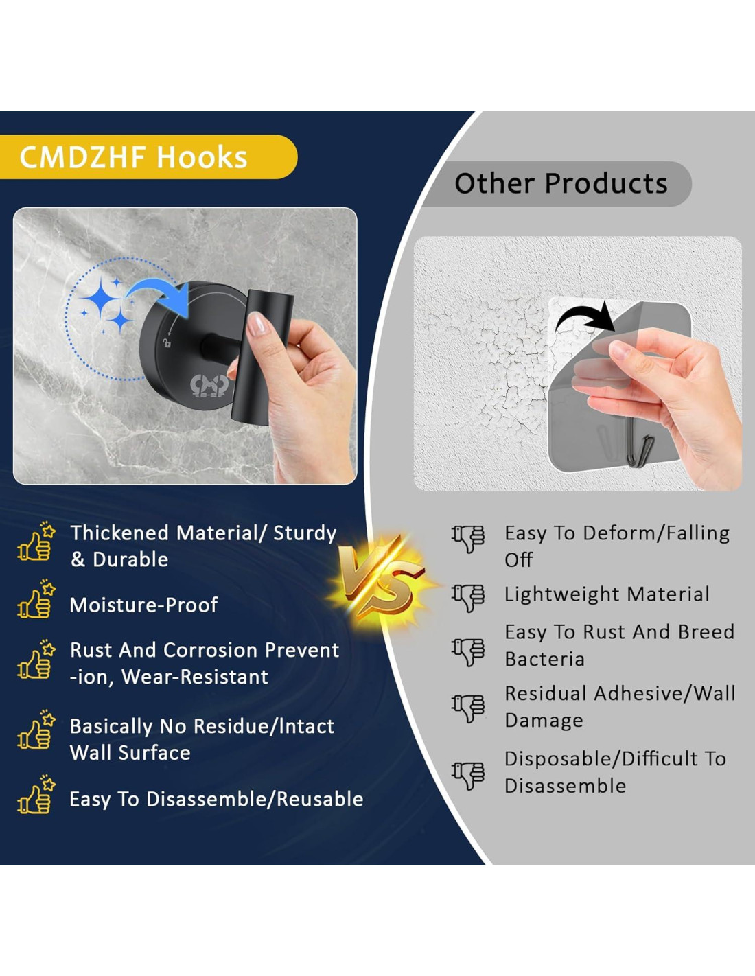 ¿Cuánto peso puede soportar cada gancho en un entorno húmedo? Cada gancho puede soportar hasta Lbs/5kg en un baño húmedo, para colgar toallas gruesas, batas, lufas y más. ¿Dejarán marcas en la pared de mi ducha o azulejos? ¡Nunca! El silicón de grado profesional no deja residuos. Retíralos en cualquier momento girando hacia la izquierda - cero rayones o manchas. ¿Son los ganchos a prueba de óxido para un uso prolongado en el baño? ¡Absolutamente! El acero inoxidable 304 resiste el óxido y la corrosión, incluso con la exposición diaria al agua y al jabón.