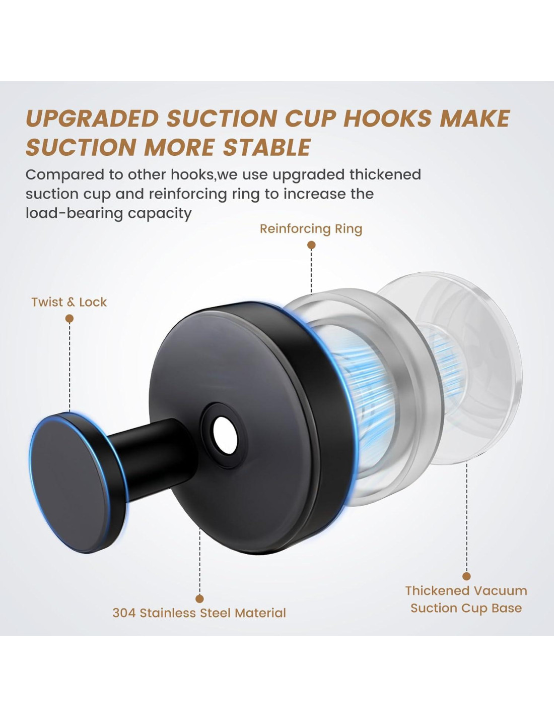 - [Fuerte Succión] Adoptando tecnología avanzada de adsorción al vacío, los ganchos de baño pueden ser firmemente absorbidos en azulejos de baño y puertas de vidrio, asegurando un uso a largo plazo.