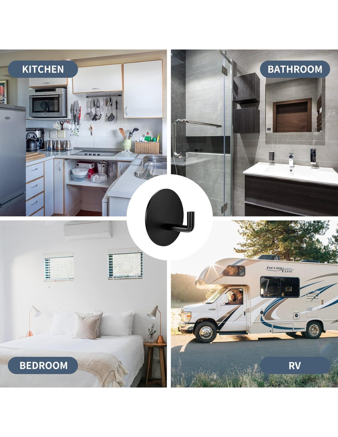 Ganchos Adhesivos de Alta Resistencia -- Estos ganchos adhesivos para colgar están hechos de acero inoxidable 304 que es resistente e impermeable. Usando adhesivos fuertes, la capacidad máxima de carga es de 2.72 kg.