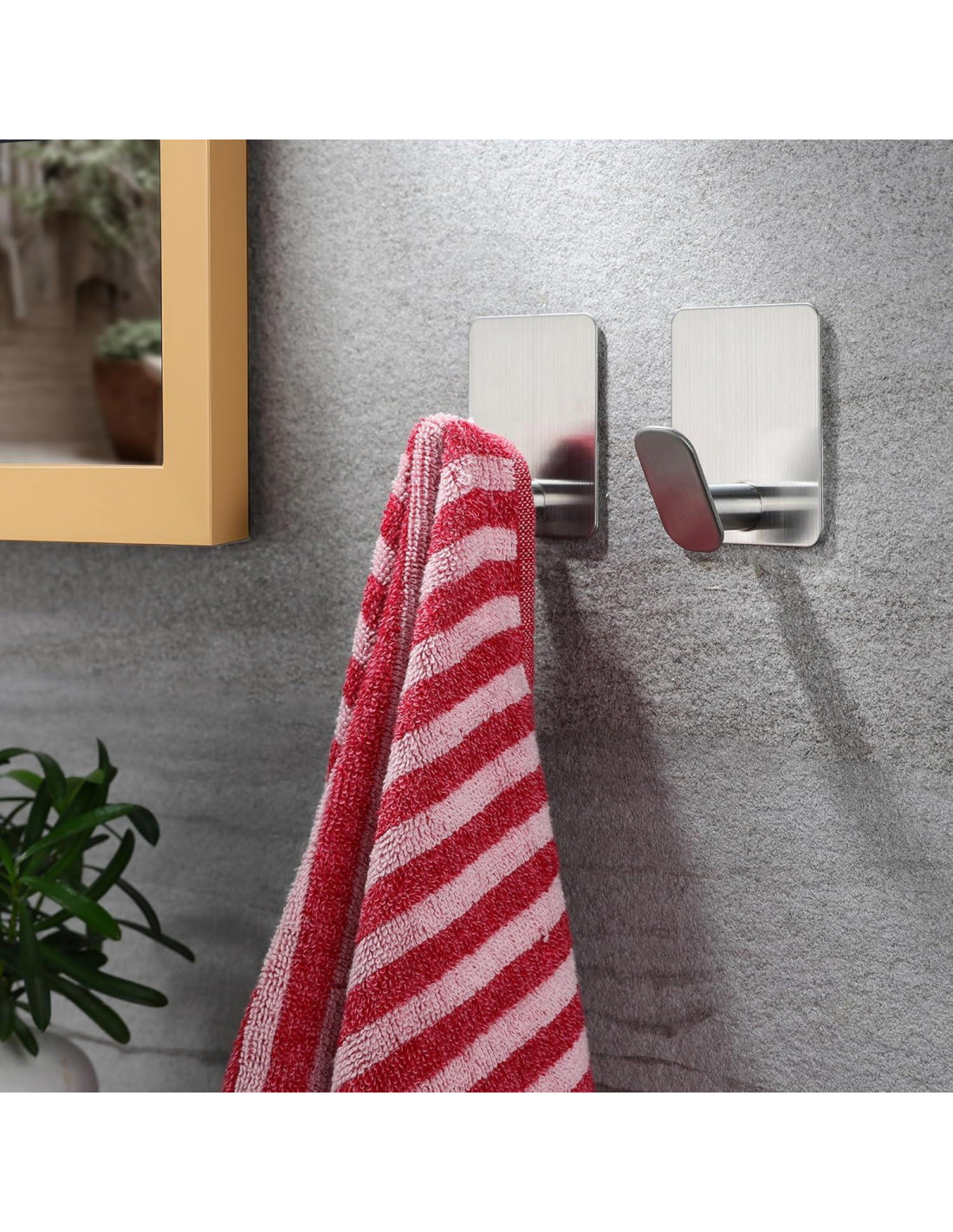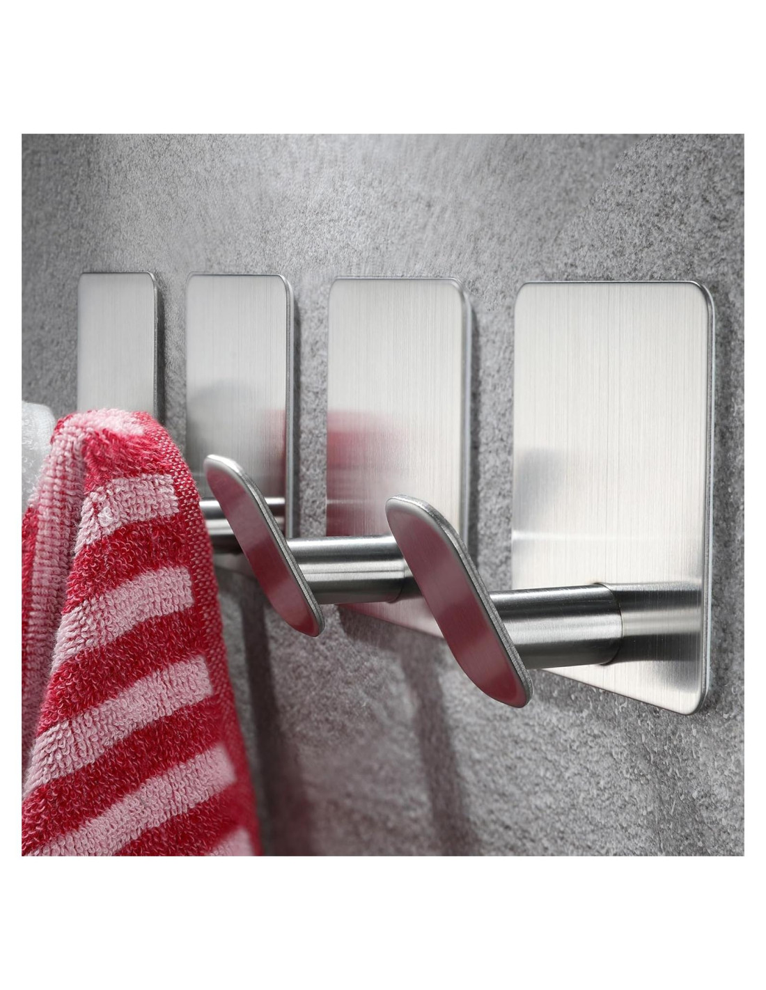 Ganchos de Pared Plateados YIGII, Ganchos Autoadhesivos para Colgar Abrigos Ropa Closet Bata de Alta Resistencia, Soporte para Toallas Adherido en Baño Cocina, Paquete de 4