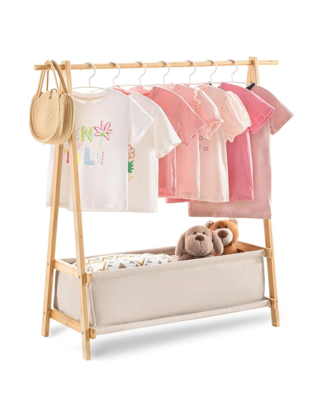 - Seguro y No Tóxico: Hecho de bambú natural, este armario para niños está libre de productos químicos dañinos, lo que lo hace seguro para tus pequeños. A diferencia de algunos ganchos de madera o plástico, este perchero asegura que la piel sensible de tu hijo esté protegida de alérgenos e irritantes.