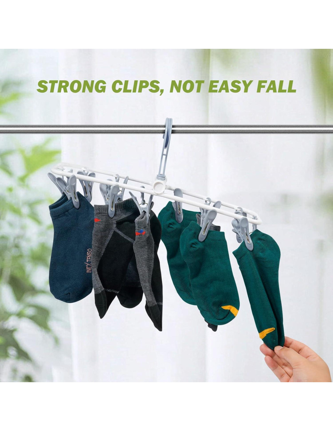 - El Perchero Goteante está equipado con 12 clips removibles con dientes antideslizantes y resortes de acero que se pueden usar para colgar muchos artículos pequeños.