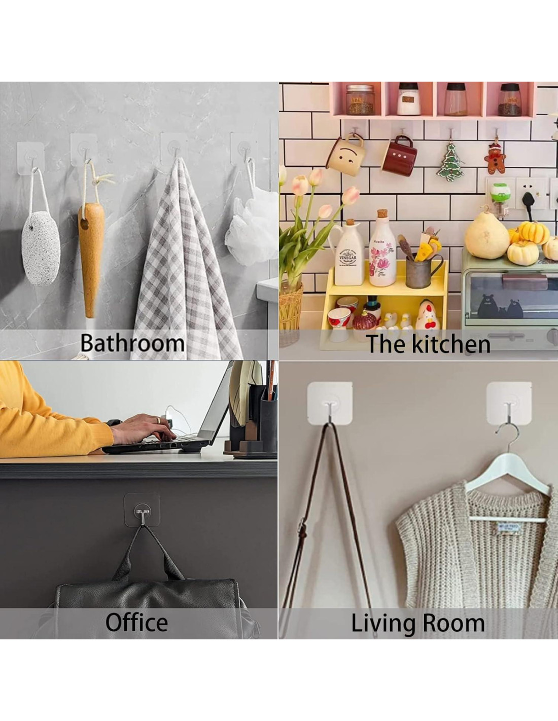 - Fácil de Usar: Despegue la cubierta trasera y pegue en la superficie objetivo. Pegue ganchos adhesivos transparentes fácilmente para limpiar y reposicionar. Son fuertes y pueden sostener sus accesorios en su lugar en cualquier superficie.