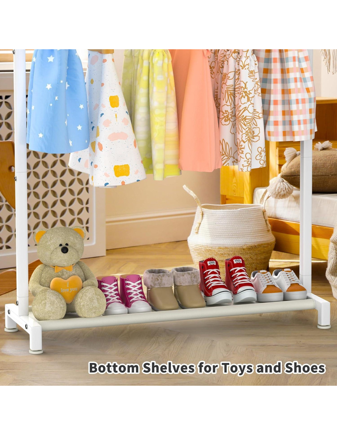 - Construido para Durar - Nuestro perchero infantil está hecho de acero al carbono de alta calidad para un soporte más fuerte y puede sostener de 20 a 30 perchas de vestidos de princesa, zapatos y más. Incluso al sostener hasta 22.68 kg, se mantiene estable y previene que se vuelque.