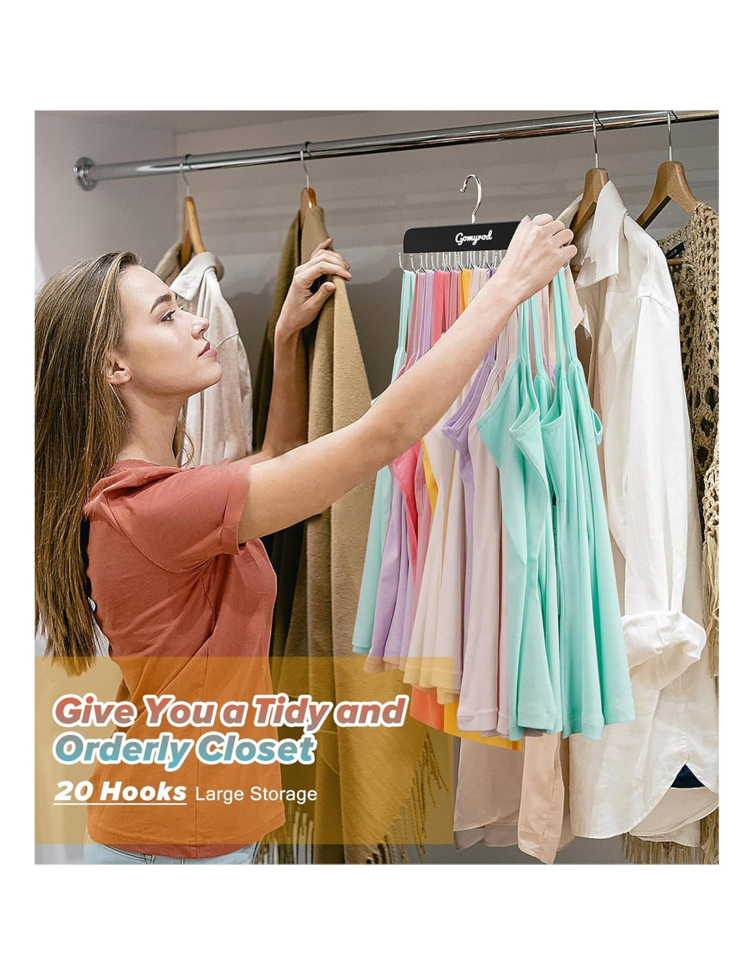 - Diseño Plegable que Ahorra Espacio: Maximiza el ahorro de espacio en tu closet con los ganchos plegables de estos percheros para camisetas sin mangas Gomyrod. Cuando no estén en uso, simplemente pliega los ganchos hacia abajo para crear un perfil delgado. Perfecto para closets pequeños, residencias estudiantiles y apartamentos.