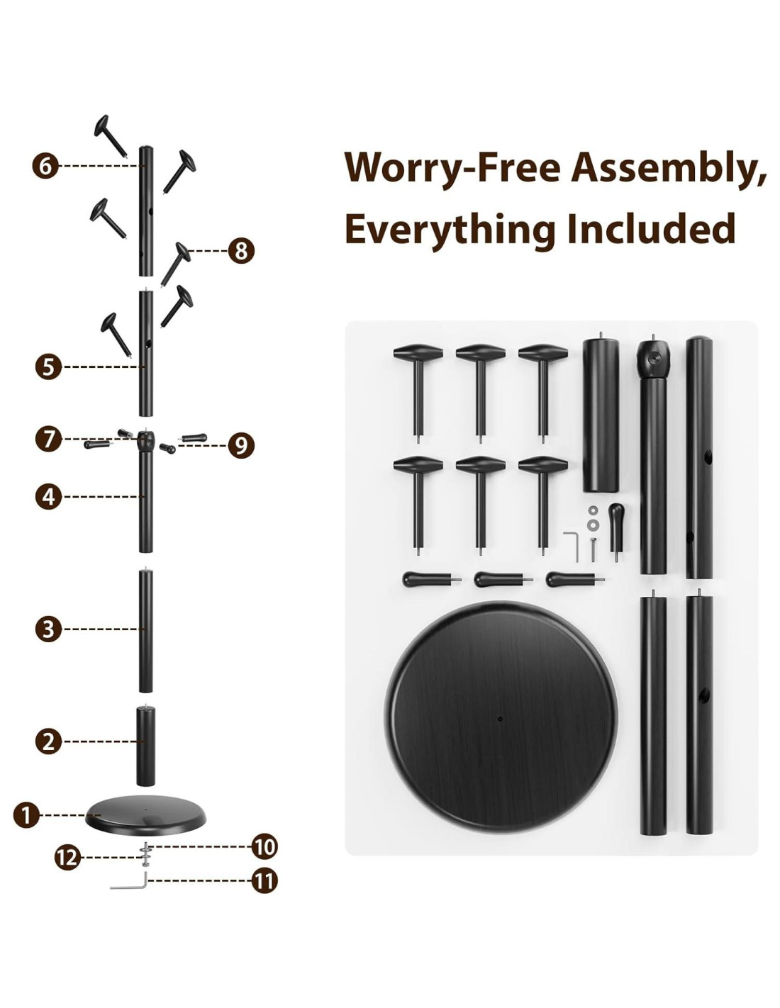 - Fácil Instalación - Duradero: Nuestro perchero de madera sólida natural viene con herramientas e instrucciones de instalación detalladas para un ensamblaje rápido y fácil, convirtiéndolo en un proyecto de bricolaje simple y divertido. La altura ajustable también es adecuada para habitaciones de niños.