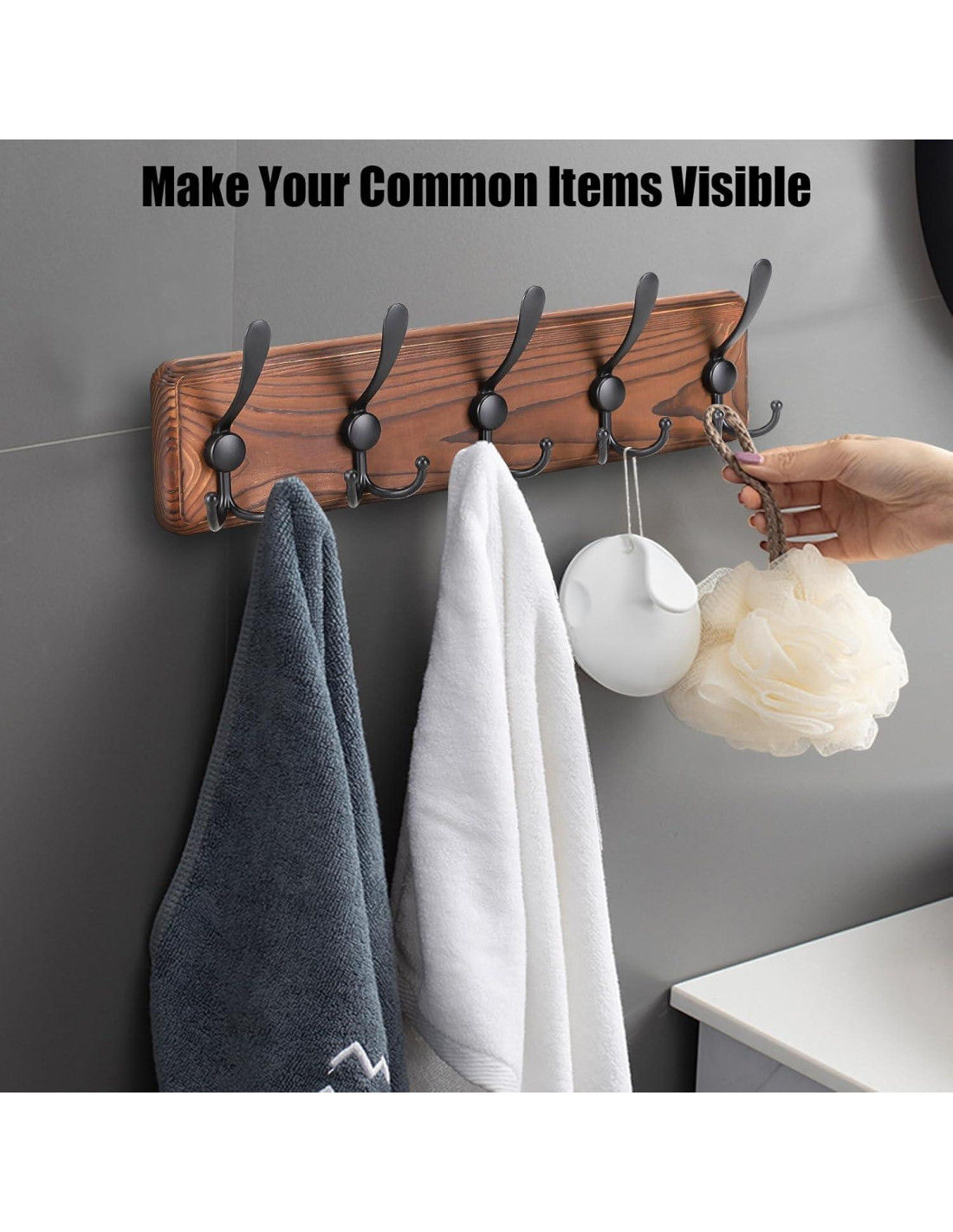 - Diseño que ahorra espacio: Este gancho de pared montado no solo añade un encanto rústico a sus paredes, sino que también libera espacio en el suelo, maximizando la funcionalidad de su área de vida con sus 5 ganchos triples