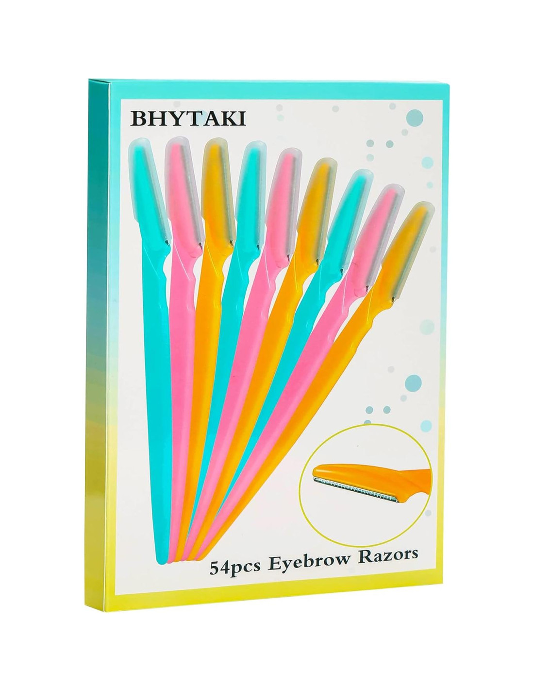 - 54 Piezas en el Paquete: 3 colores vibrantes: azul, rosa, amarillo. 18 piezas por color, total 54 piezas. Nuestras rasuradoras de cejas son de diferentes colores que se pueden usar en diferentes partes del cuerpo para distinguirlas, lo que las hace más limpias.