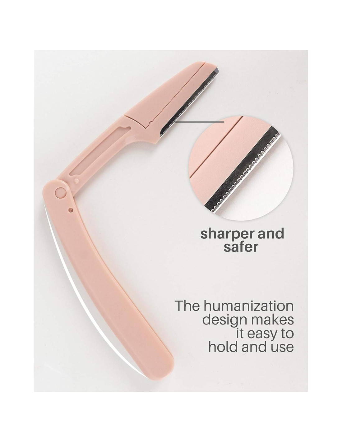 La hoja de dientes micro-groove de las rasuradoras para mujeres para afeitar con superficie areola hace que el recortador de cejas para mujeres sea afilado pero no fácil de lastimar tu piel. Longitud de la rasuradora: 15 cm (5.9 pulgadas) Longitud de la hoja: 3.6 cm (1.4 pulgadas)