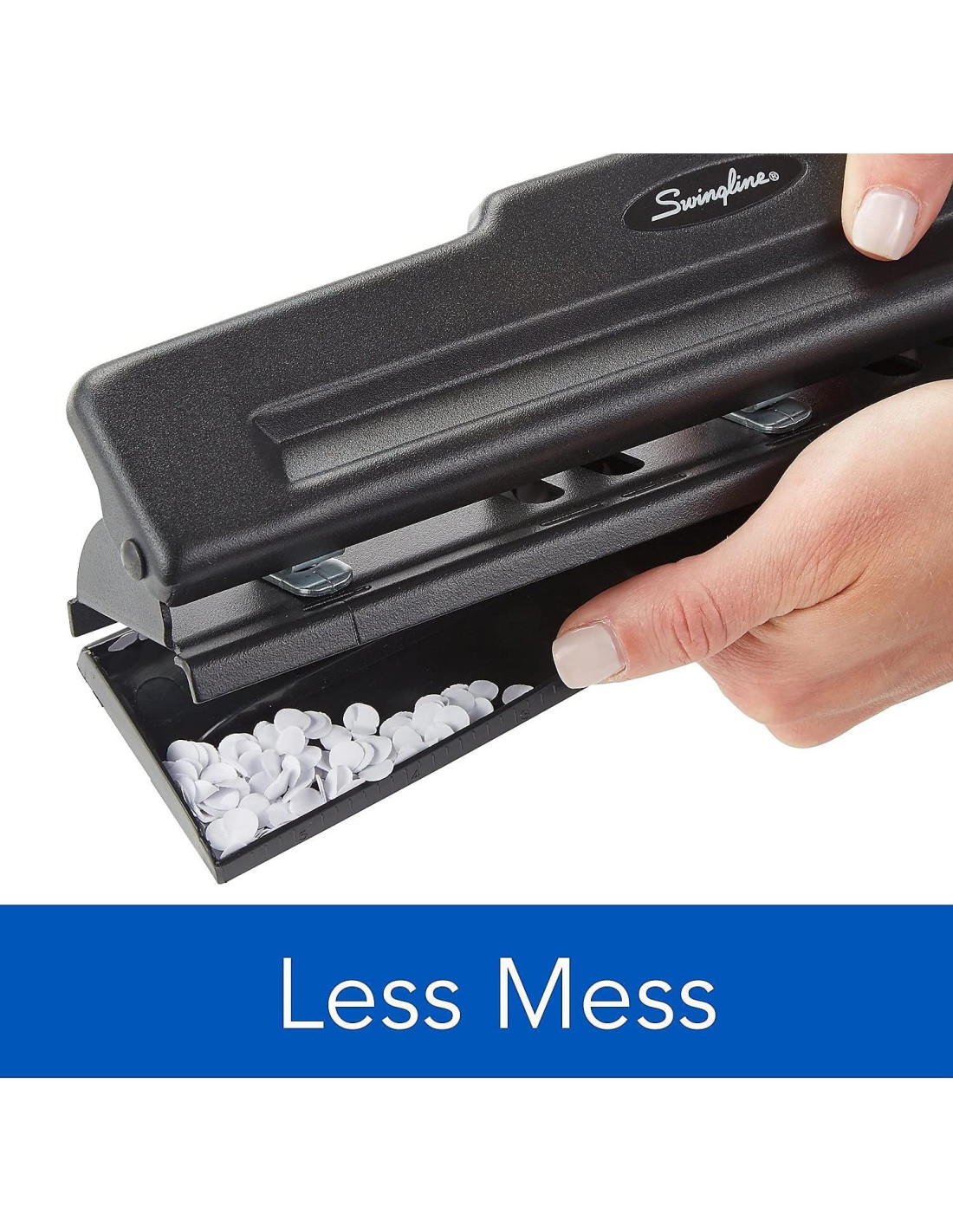 Descripción del Producto La Perforadora de Uso Ligero Swingline tiene una construcción metálica duradera para un servicio prolongado y es la opción perfecta para trabajos pequeños. La perforadora manual perfora hasta 10 hojas de papel, creando agujeros precisos de 9/32" (7.14 mm). Las cabezas de perforación semi-ajustables ofrecen colocación flexible de agujeros, dándote 7 opciones de colocación posibles. La perforadora viene con 3 cabezas de perforación, pero puede acomodar hasta 7. Las cabezas de repuesto (A7074850) se venden por separado. Swingline respalda esta alta calidad.. Amazon.com Diseñada con una construcción completamente metálica para un rendimiento confiable, la Perforadora de Uso Ligero Swingline A7074015K presenta cabezas de calidad para agujeros limpios de 9/32 pulgadas (7.14 mm). La perforadora viene con siete paradas (para aceptar siete cabezas) para colocaciones de agujeros flexibles que se adaptan a una variedad de tamaños de papel. Con la capacidad de perforar 10 hojas de papel de 20 libras (9.07 kg) a la vez, esta perforadora viene respaldada por una garantía limitada del fabricante de 90 días.
