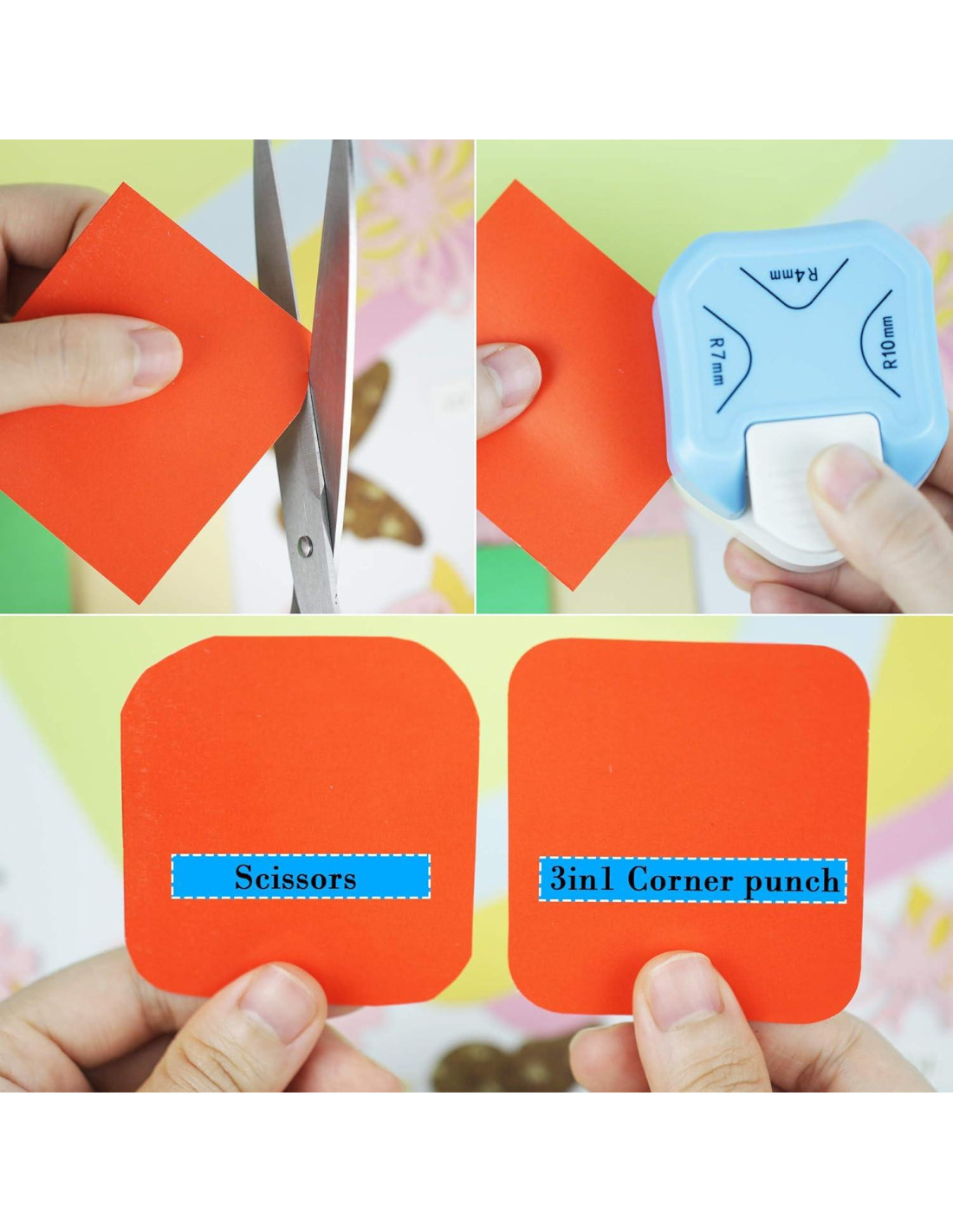 - CORTA ESQUINAS DE 4MM 7MM 10MM: Esta cortadora de esquinas compacta tiene un radio de esquina, que es excelente para proyectos de manualidades en papel. El diseño pequeño y robusto de la cortadora de esquinas se adapta perfectamente a tu mano, la cortadora de esquinas te dará esquinas redondeadas de 4mm 7mm 10mm.