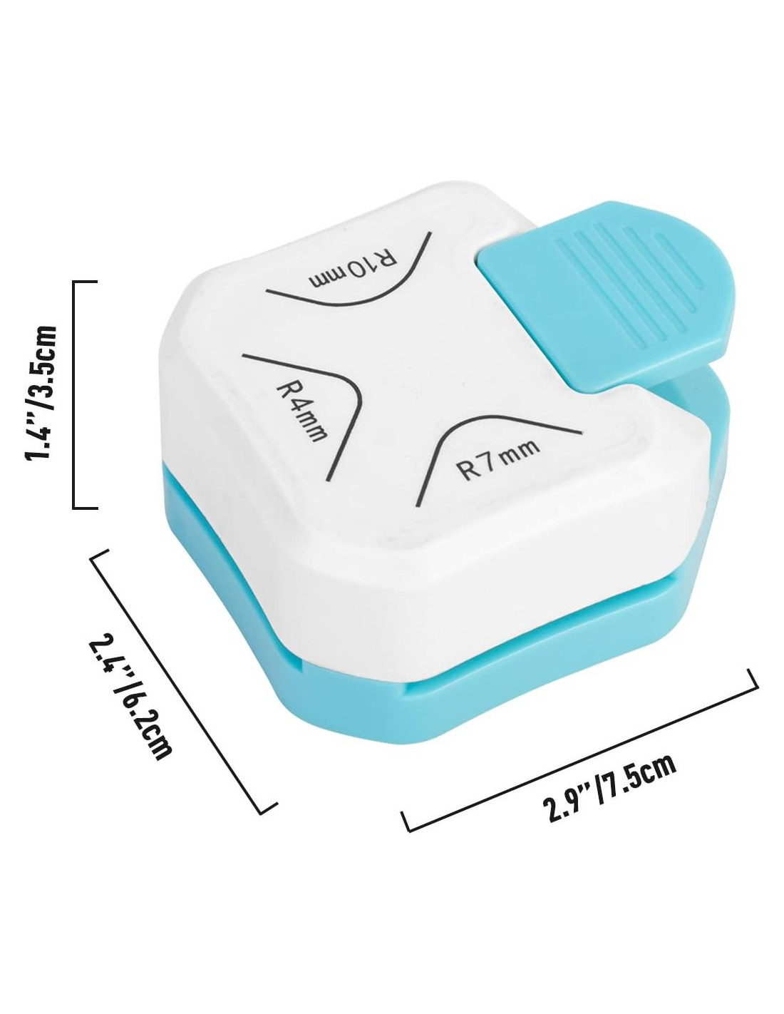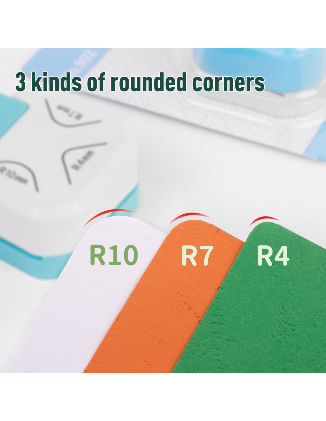 - Tres tamaños de cortadores de esquinas con cortes afilados y perforaciones limpias, sin problemas con papel rasgado, atascos o bordes irregulares.