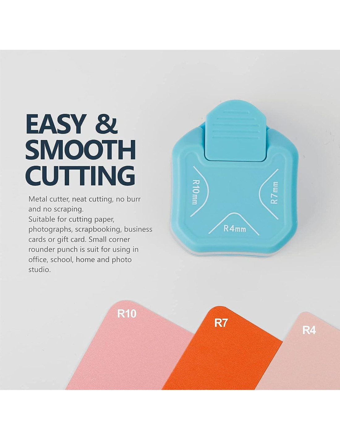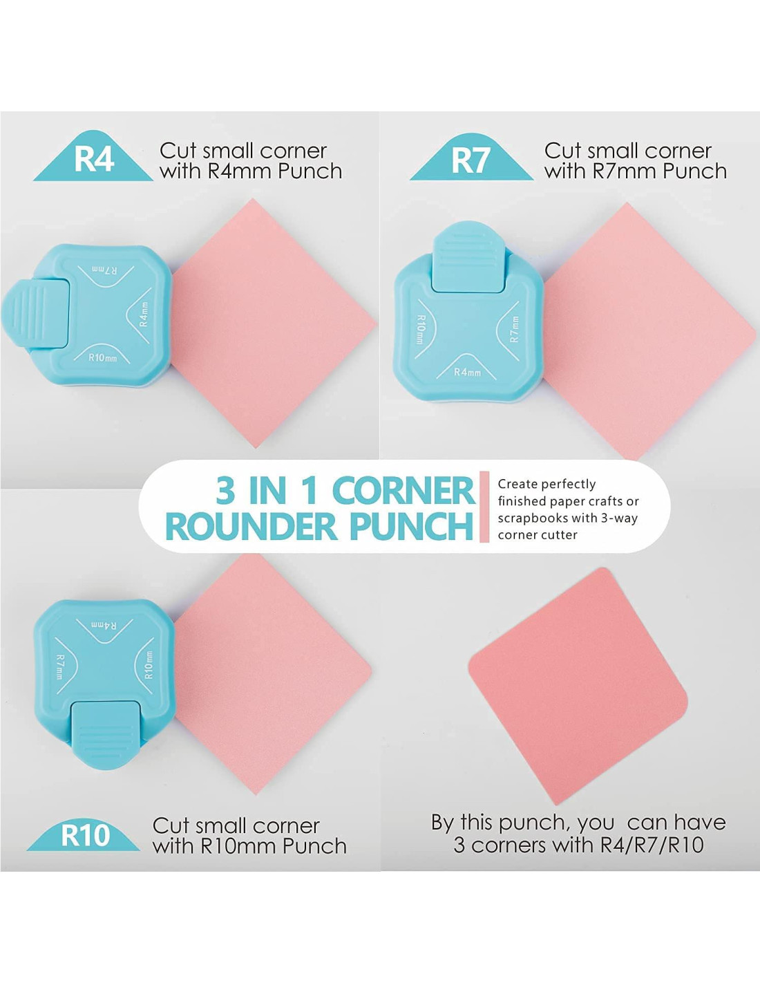 - 3 MANERAS DE CORTAR: Este cortador de esquinas compacto redondea esquinas de 4mm, 7mm, 10mm, que son ideales para proyectos de manualidades en papel. El cortador de esquinas BearBoss tiene un diseño pequeño y robusto que se adapta perfectamente a tu mano y facilita el almacenamiento. El cortador de esquinas te dará esquinas redondeadas de tamaño 4mm, 7mm, 10mm.