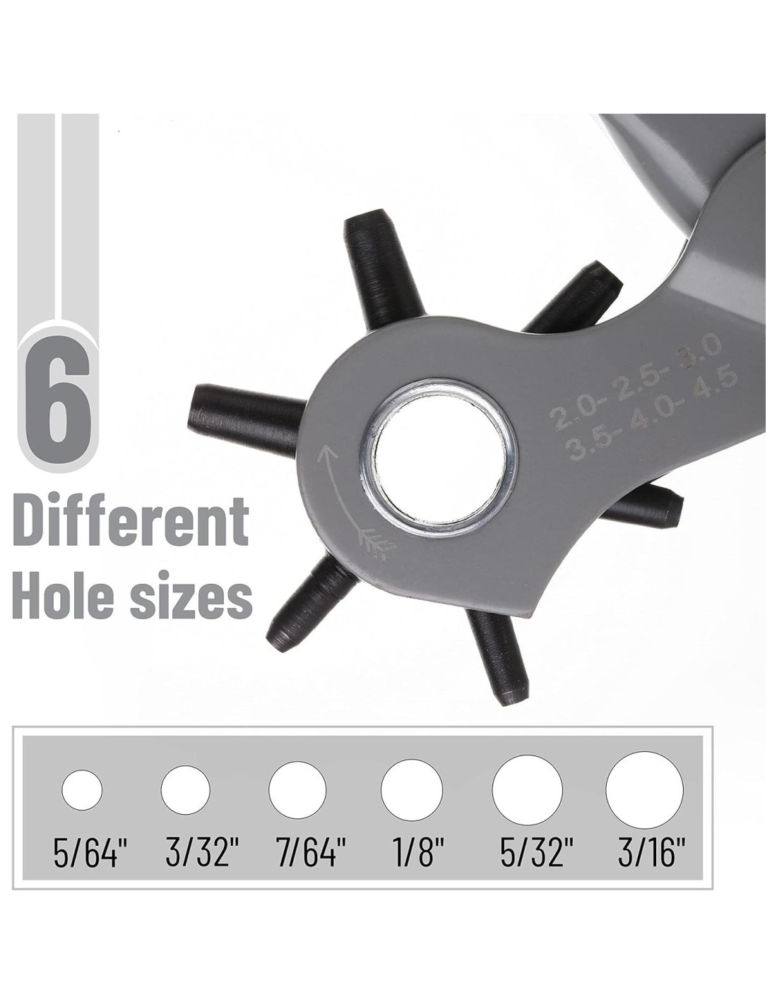- ¡Conveniente, práctica y efectiva! Simplemente desbloquea el mango, gira la rueda para seleccionar el tamaño del agujero, alinea el material de cuero y aprieta los mangos.