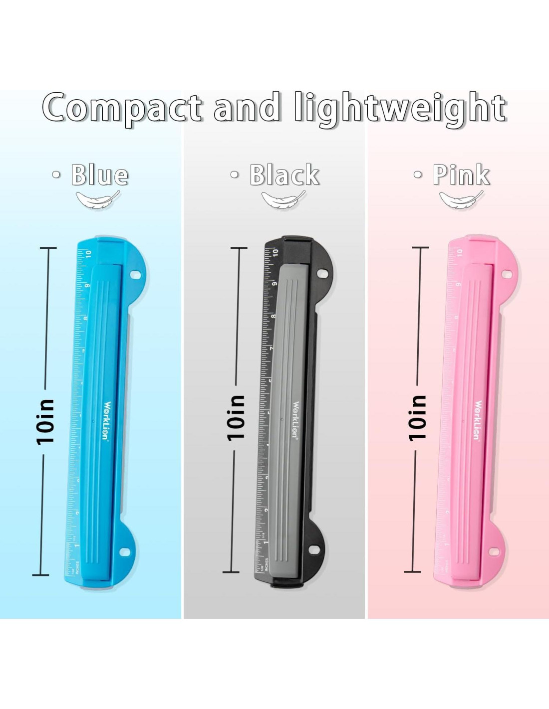 - Más colores disponibles para que elijas, azul cielo y negro suave, incluso dos paquetes negros como un conjunto. La regla de perforadora de 3 agujeros Worklion sería un regalo sorpresa para cualquiera que vaya a la escuela o comience a trabajar pronto.