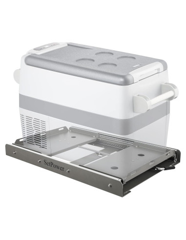 El riel deslizante de SetPower proporciona una solución de instalación compacta, segura y universal que se puede instalar en cualquier plataforma. Te brinda una gran comodidad para tus actividades al aire libre e interiores. Perfecto para un viaje por carretera, camping. Funciona a la perfección en jeep, SUV, camioneta y RV. Diseñado para el refrigerador congelador portátil de la serie AJ de SetPower, pero también es adecuado para otros refrigeradores de automóvil portátiles de tamaños similares. Puedes juzgar si el deslizante es aplicable según el tamaño de la base del refrigerador.