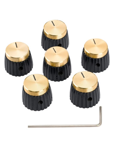 Musiclily Pro Universal Guitar Amplifier Snap Buttons Juego de 6 con Ajuste para Todos los Potenciómetros Negro con Parte Superior de Aluminio Dorado