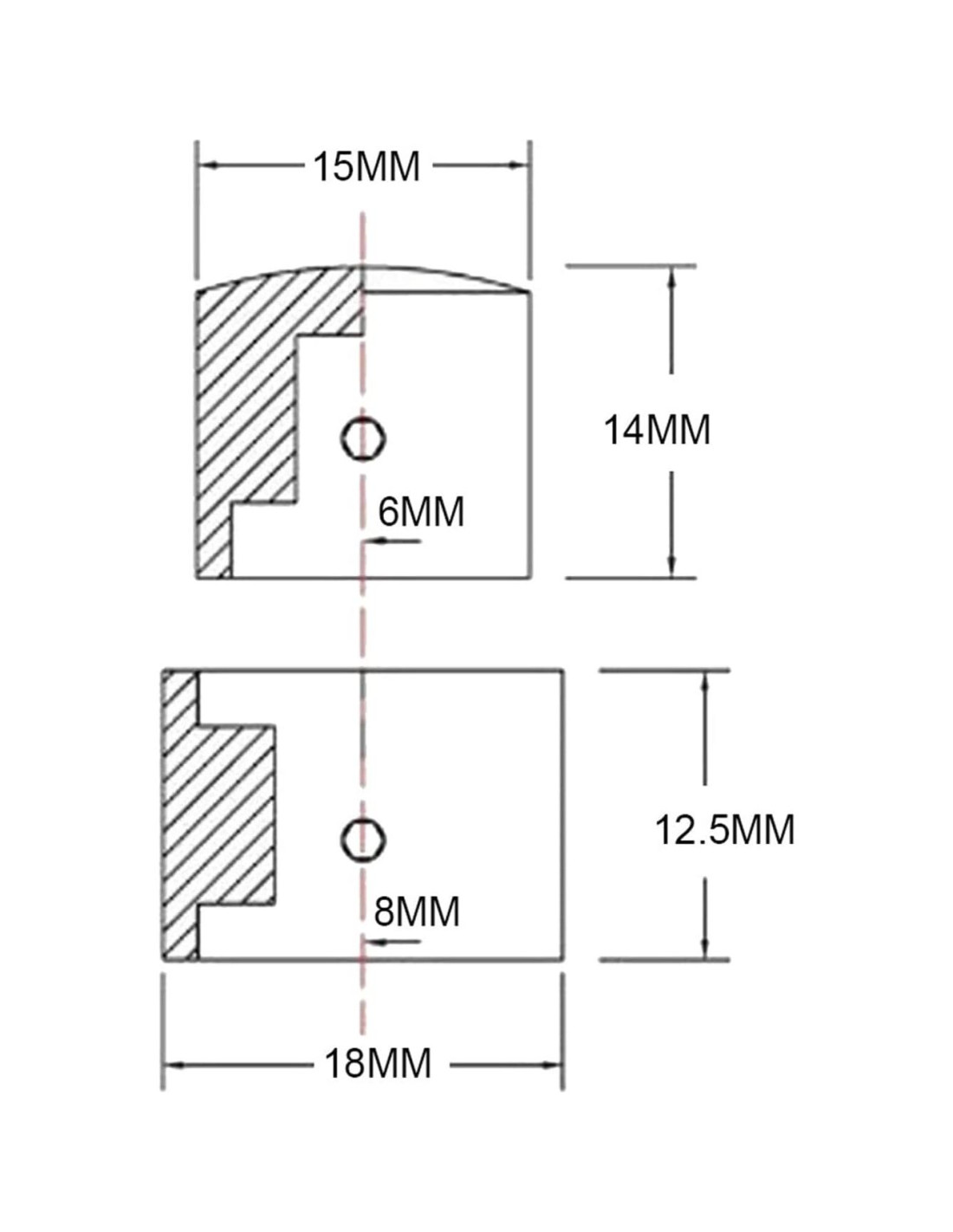 - La perilla superior tiene un agujero de diámetro interno de 1/4 pulgada (6.3mm); La perilla inferior tiene un agujero de diámetro interno de 5/16 pulgada (8mm)