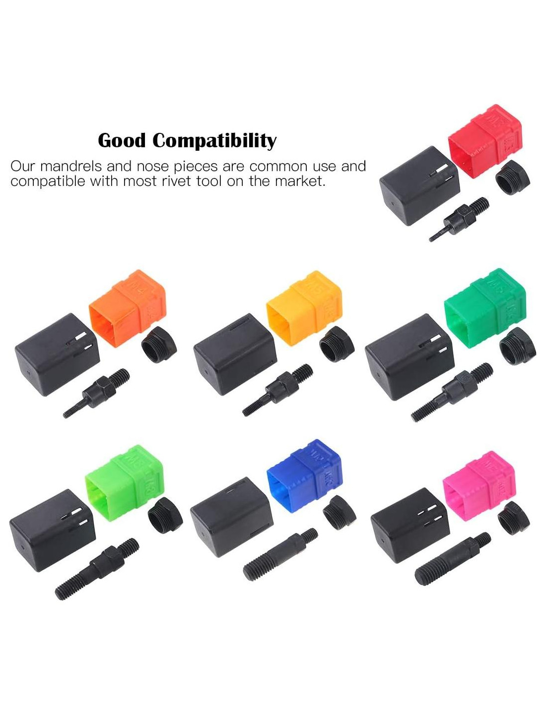 - [BUEN PAQUETE] El mandril y las piezas de nariz se colocan en un contenedor de color bonito etiquetado con el tamaño métrico y SAE correspondiente. Tapones, una bonita caja de plástico para almacenamiento es un bono. 1 pieza de mandril y pieza de nariz está empacada en una caja de plástico.