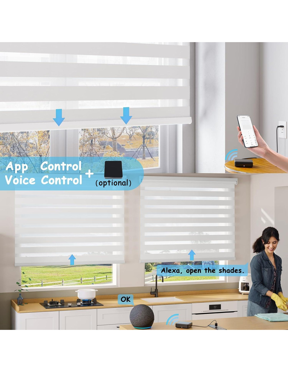 - Operación Inteligente y Silenciosa: Con un motor tubular silencioso, las sombras Zebra operan a un nivel de ruido de menos de 35 dB a un metro, asegurando un ambiente pacífico. Son compatibles con el control por voz a través de Google Assistant y Amazon Alexa (se requiere hub, se vende por separado).