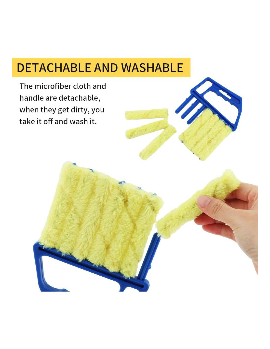 - [Desmontable y Lavable] - El paño de microfibra y el mango de la herramienta de limpieza de persianas de ventana son desmontables, así que cuando el rodillo se ensucia, simplemente quítalo para lavarlo.