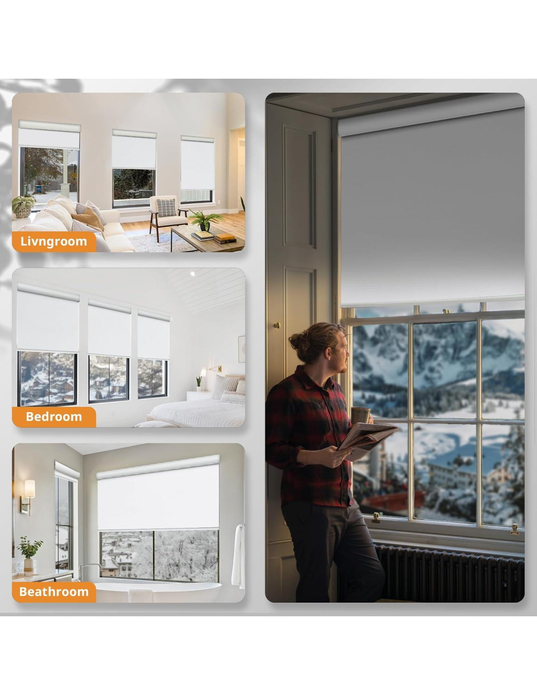 - [Tejido Texturizado Mejorado] Con una superficie texturizada lujosa y bumpy, nuestras persianas motorizadas ofrecen un aspecto y sensación premium. Estas persianas enrollables automáticas están compuestas de múltiples capas de tela. Además, estas persianas automáticas son duraderas, fáciles de limpiar y proporcionan una excelente aislamiento térmico y función de luz reflejada. Las persianas opacas inteligentes te ayudan a equilibrar mejor la temperatura interior y reducir el ruido.