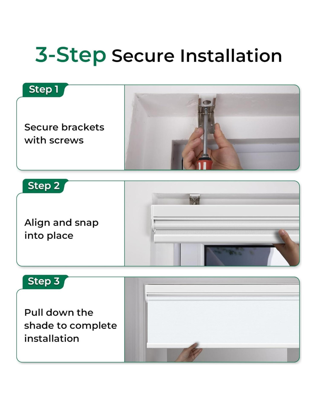 - Persianas 100 Por Ciento Opacas: Evita eficazmente la fuerte luz solar con un blackout completo, asegurando privacidad absoluta y aislamiento adicional. Reduce el ruido y protege contra daños por UV. Adecuado para ventanas interiores, dormitorios, salas de estar, baños, cocinas, oficinas y más. El diseño inalámbrico es seguro para tu familia, niños y mascotas.