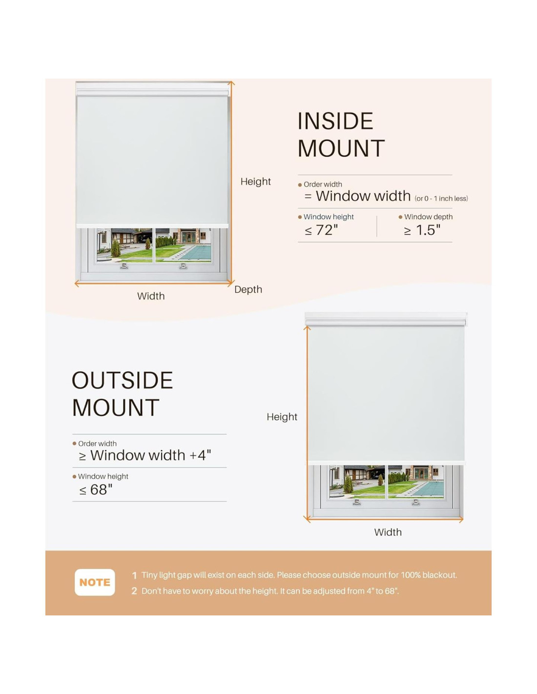 - FÁCIL INSTALACIÓN: Con PVC de alta calidad, nuestras persianas motorizadas son ligeras, duraderas y resistentes a la decoloración. Una persona puede instalarlas fácilmente, ahorrando tiempo y esfuerzo. Tenga en cuenta: Hemos reservado un margen de 1/4" de ancho en el pedido para un ajuste perfecto. La altura total extendida de la persiana es de 72" (incluyendo el cuerpo, la tela y la viga inferior). Para la instalación interior, la profundidad del marco de la ventana debe ser de al menos 1.5". Para la instalación exterior, el ancho del pedido debe ser 4" más que el marco de la ventana.