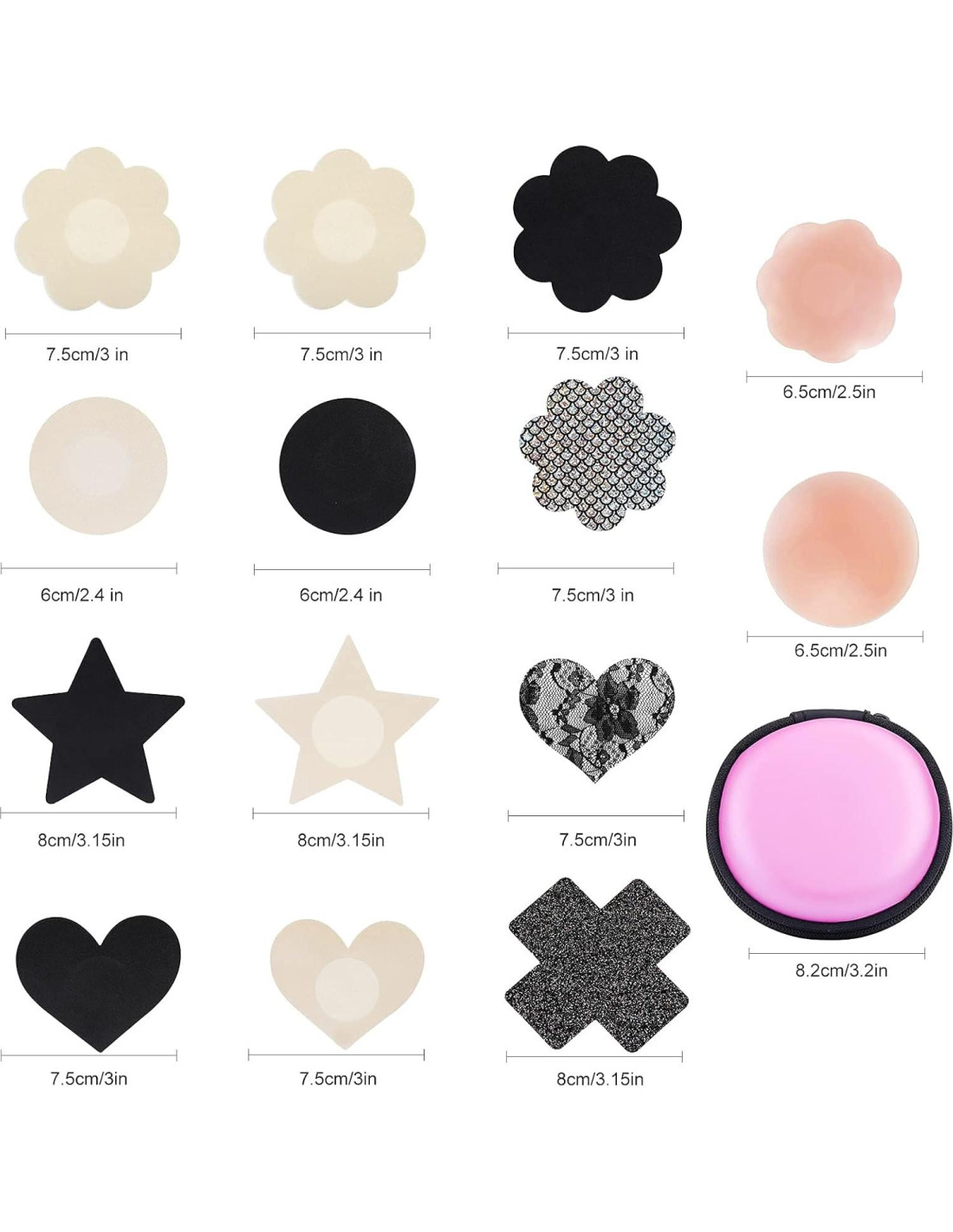 - INCLUYE PAQUETE - Hay 76 piezas de cubiertas de pezón para mujeres con 1 caja de almacenamiento. Puedes ponerlas en la caja y acompañarte a muchos lugares. 12 estilos y 5 materiales diferentes de pastillas de pezón aseguran que tus pezones no se muestren. Son naturales y suaves, lo suficientemente gruesas para ocultar tus pezones