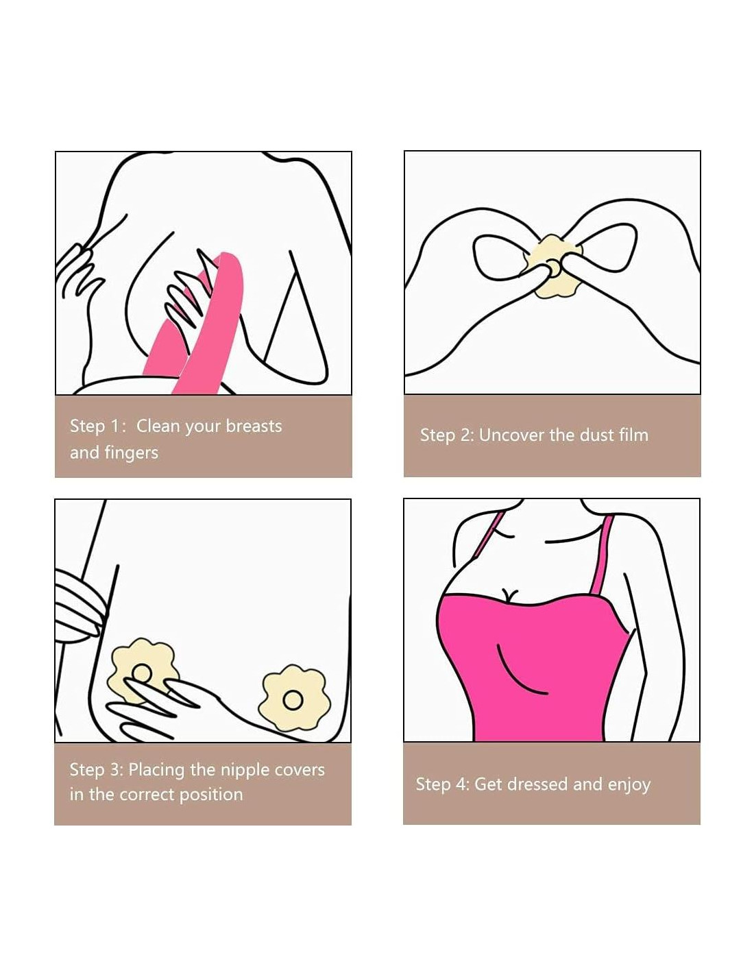 - MÉTODO DE LAVADO - Nuestras cintas de pezón de silicona son fáciles de limpiar y reutilizables, simplemente humedece la superficie adhesiva con agua tibia y un detergente suave y luego deja secar al aire. No se contaminan fácilmente con polvo y son fáciles de almacenar. No exponer al sol