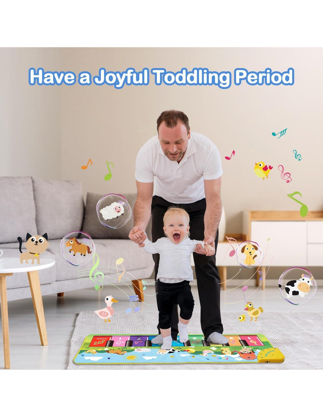 - Divertido y Atractivo: Este juguete musical es una alfombra de piano que cautiva al niño con sus colores brillantes, luces suaves y sonidos divertidos; diseñado para niños pequeños de tres meses a cinco años, anima al niño a gatear, saltar y bailar, activando melodías encantadoras con cada paso y toque