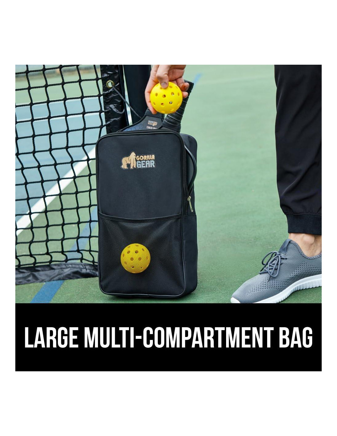 - PODER ENCUENTRA PRECISIÓN, CONJUNTO DE 7 PIEZAS: aumenta tu ventaja competitiva con el Conjunto de Pickleball de Gorilla Gear; perfecto para jugadores de todos los niveles de experiencia, incluso excelente para principiantes; funciona para jugadores diestros o zurdos; el conjunto incluye 2 palas potentes, 2 pelotas para interiores, 2 pelotas para exteriores y una bolsa de transporte