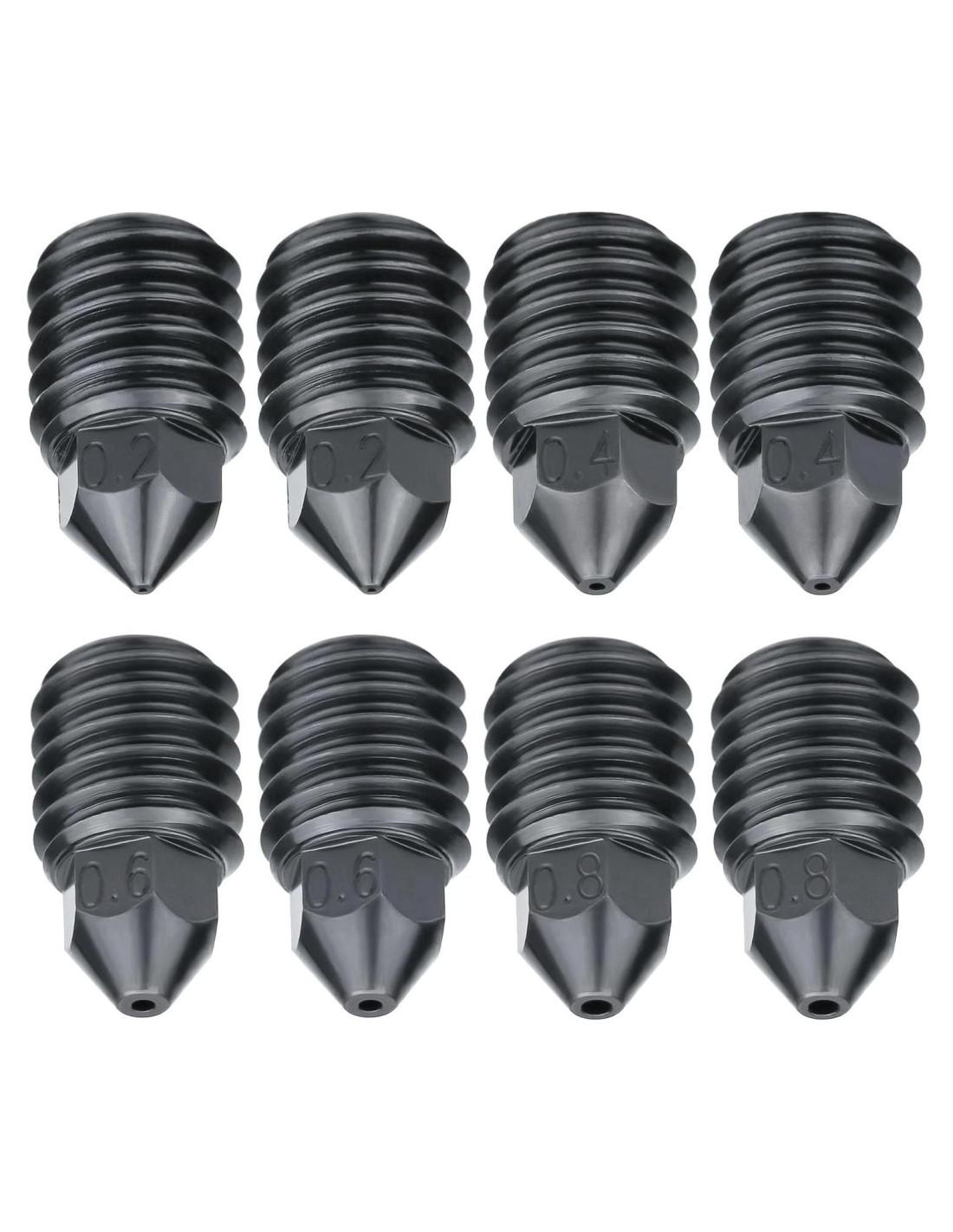 - 8 piezas: 2*0.2mm boquilla + 2*0.4mm boquilla + 2*0.6mm boquilla + 2*0.8mm boquilla.