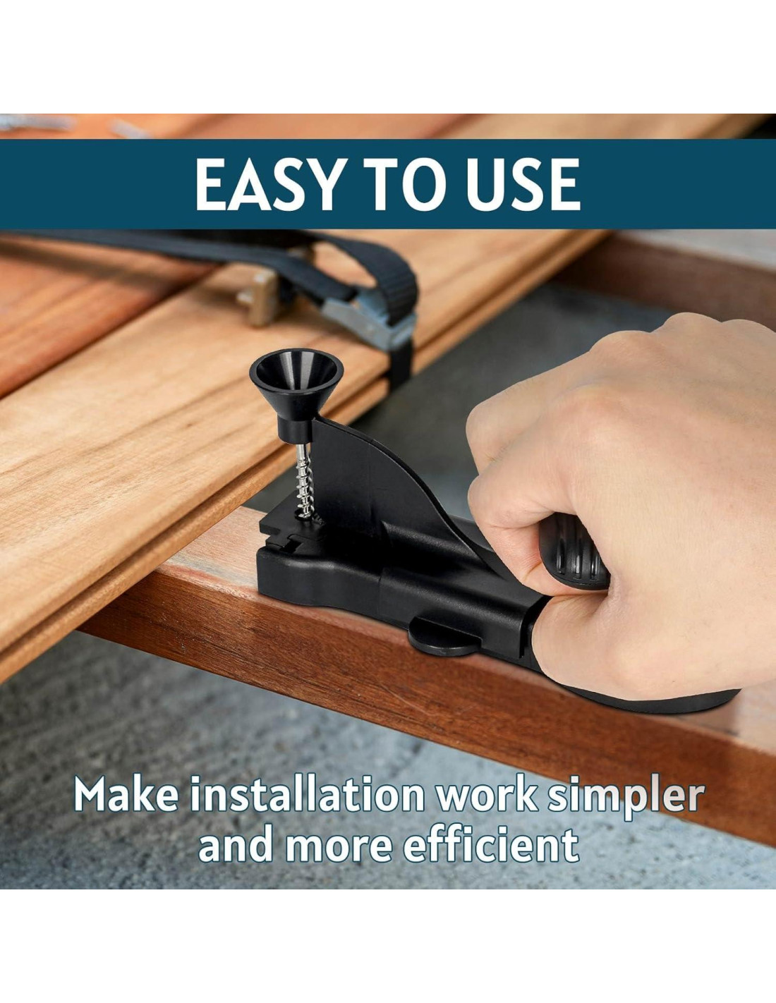 - Eficiencia Mejorada: esta herramienta de instalación de sujetadores de mano permite una colocación más rápida y consistente de los sujetadores ocultos Hideaway. Está diseñada para crear un enfoque simplificado para conducir sujetadores, reduciendo el tiempo de instalación. Con su diseño único, puedes trabajar de manera más eficiente y completar el trabajo en menos tiempo