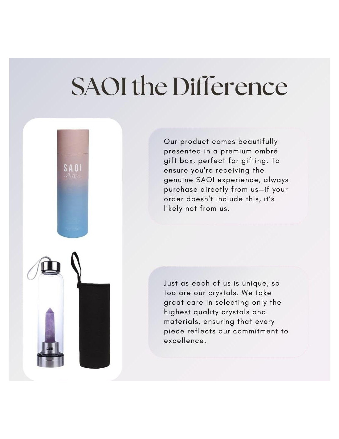 - Nombre del modelo: Botella de Agua de Cristal SAOI - Amatista - Sanación Natural de Bienestar - Vidrio/Acero Inoxidable