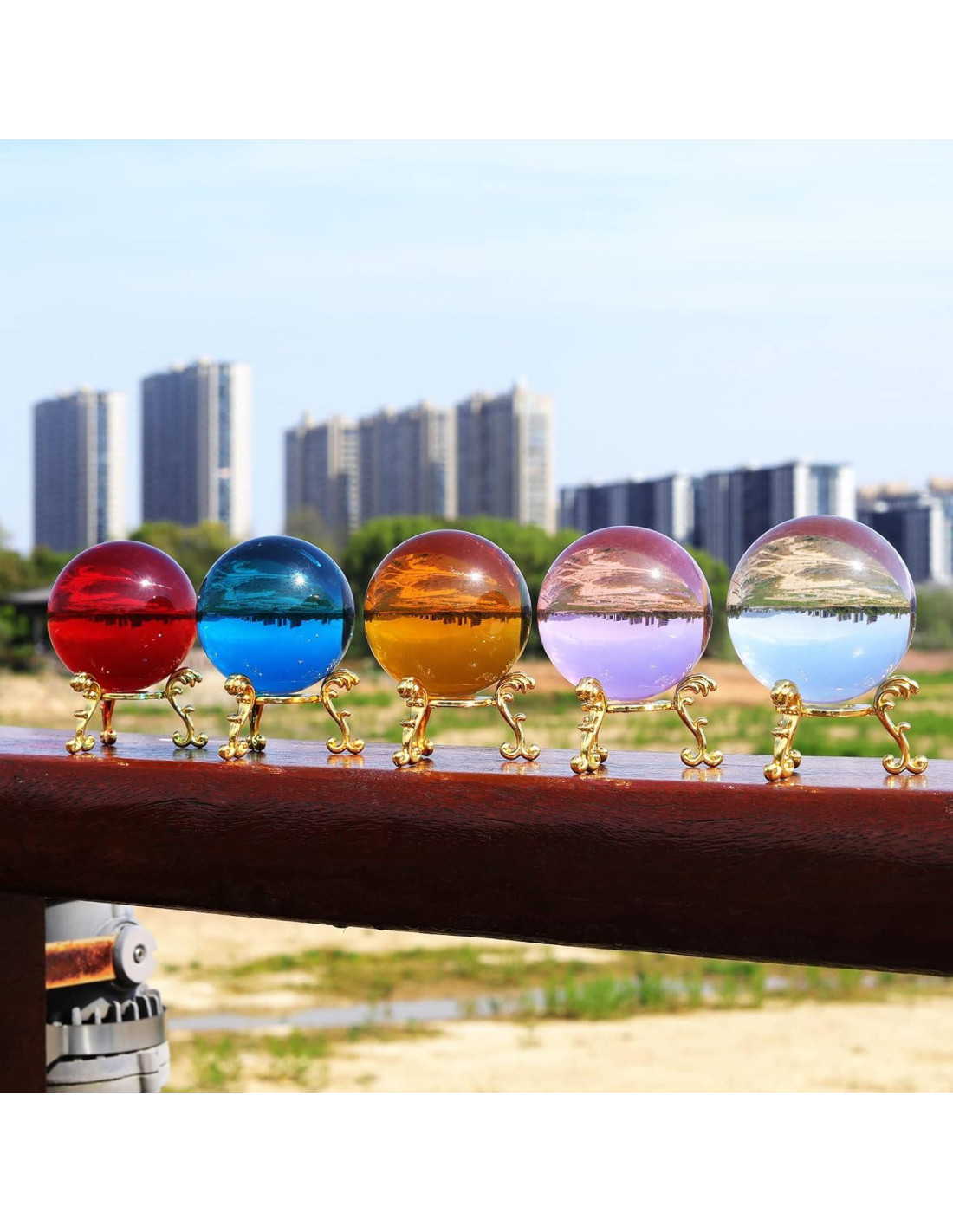 Material: la bola de vidrio está hecha de cristal k9 de alta calidad, es sólida y translúcida. Especificaciones: la bola de vidrio mide aproximadamente 60mm(2.4in), libre de plomo y sin burbujas, con un soporte de metal en forma de flor dorada. Color sólido, nunca se desvanece. Bola de vidrio para fotografía: utilizada como accesorio fotográfico, gran tamaño y peso para llevar, ideal para los amantes de la fotografía. Varios usos: excelente para la colección de artículos de feng shui, bolas de cristal para brujería, adivinaciones y propósitos de meditación, también utilizada como accesorio mágico/bola de malabares de cristal. Bolas de cristal decorativas: de múltiples colores para elegir, ideales para adornos centrales decorativos en el hogar/oficina/fiesta.