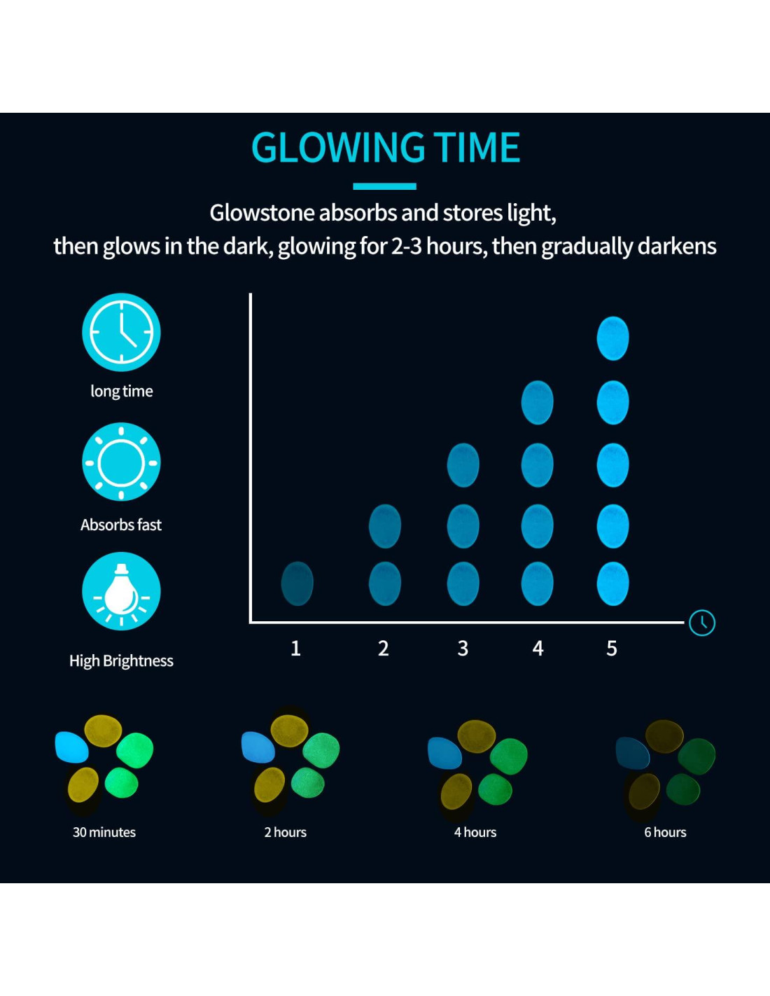 - CÓMO FUNCIONA - La piedra brillante absorbe y almacena luz, luego emite luz en la oscuridad, con varias horas de brillo intenso y luego se apaga gradualmente. El proceso se repetirá durante muchos años.