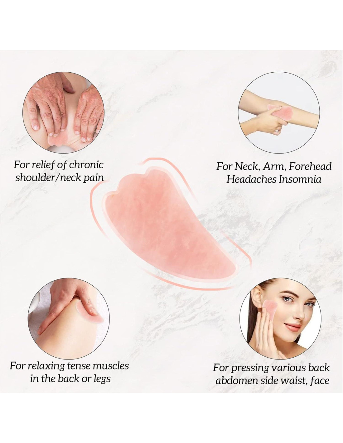 - ¿POR QUÉ GUA SHA? Funciona muy bien en todo el cuerpo. Usar la herramienta facial gua sha puede mejorar la microcirculación de los vasos sanguíneos faciales, aumentar el flujo de sangre, linfa y fluidos corporales, reducir el estrés y hacerte sentir más enérgico. También suaviza la piel facial, reduce arrugas y mejora el cutis.