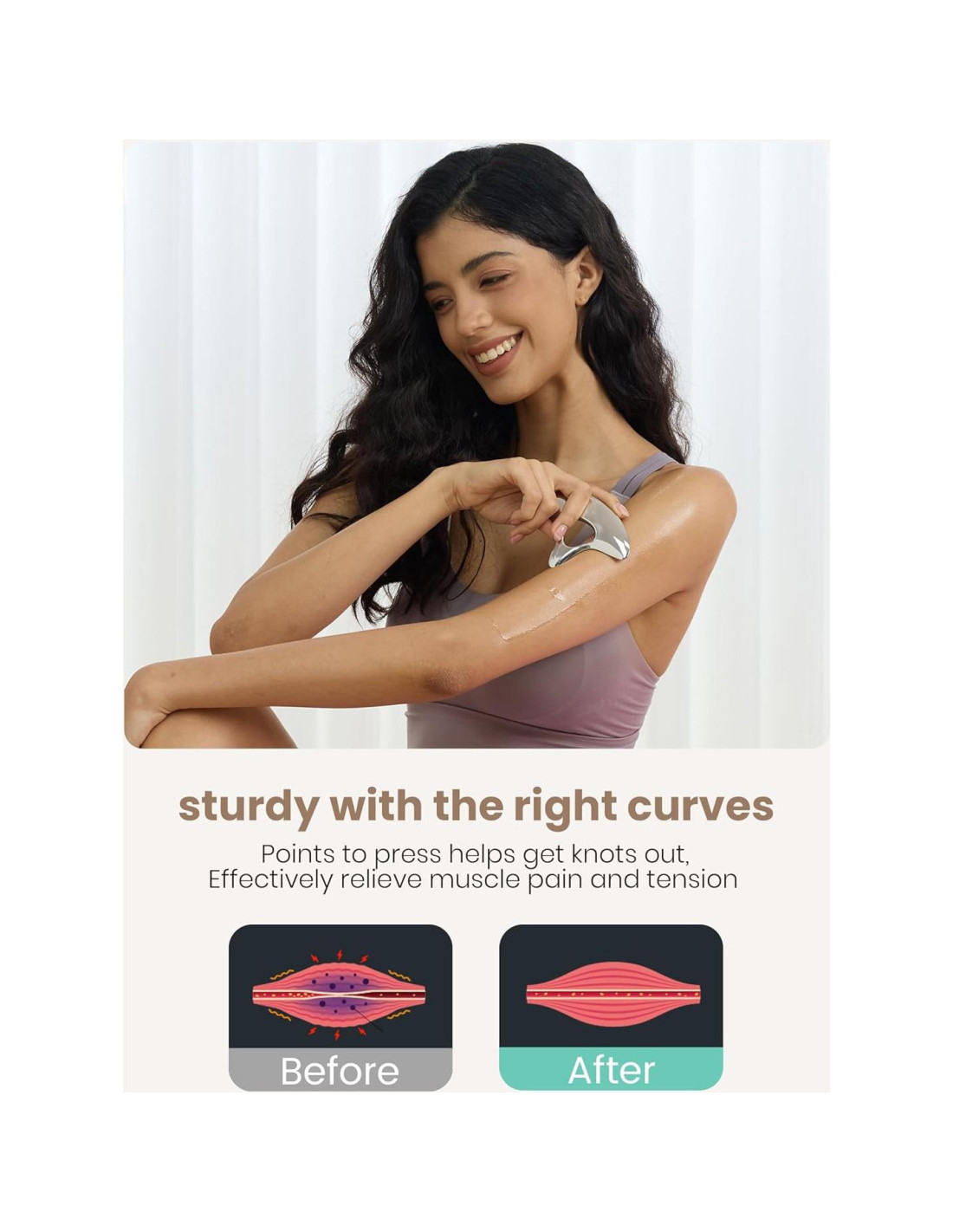 - Uso Versátil: El diseño ergonómico se adapta a las curvas del cuerpo, apuntando a la escultura facial, extremidades y grupos musculares grandes. Combínalo con aceites o lociones de masaje para mejorar el deslizamiento. Enfría antes de usar para reducir la hinchazón, ideal para las mañanas.