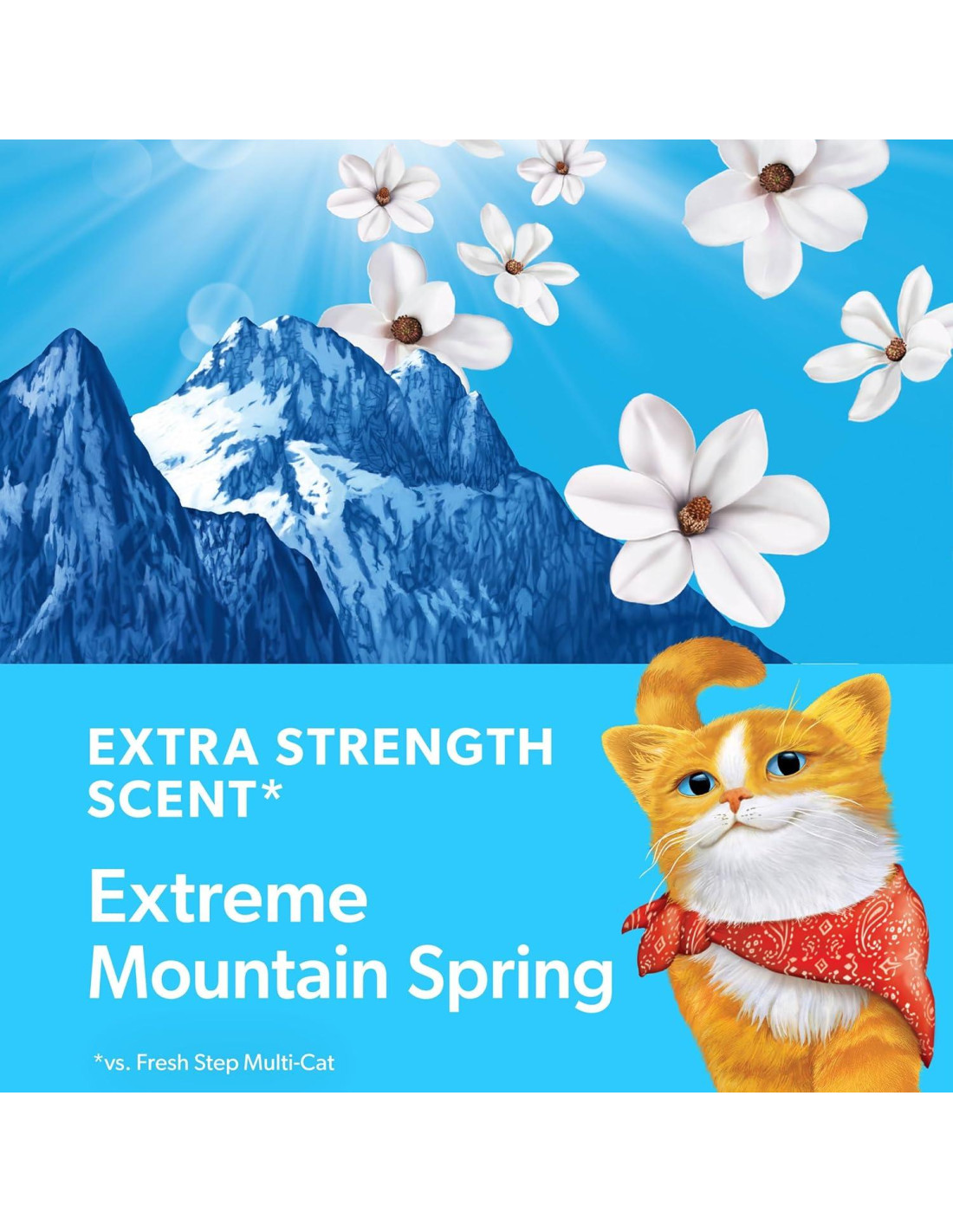 - ARENA PARA GATOS AGLOMERANTE FRESH STEP: Dos cajas de 8.4 kg. de Fresh Step Avanzado Extreme Aglomerante Arena con frescura Febreze con aroma de Primavera de Montaña para mantener las cajas de arena oliendo frescas