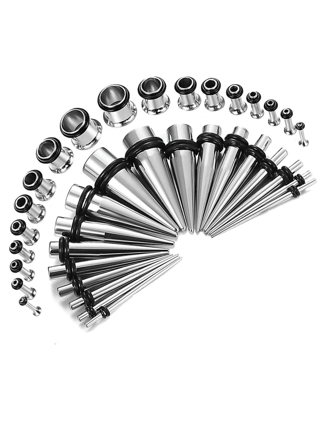 - KIT DE MEDICIÓN COMPLETO: Incluye kit de 28 piezas con tapers de acero inoxidable quirúrgico y tapones de túnel de un solo filtro; O-Rings aseguran la joyería en su lugar; las medidas varían de 12g (2 mm) a 0g (8 mm) para un estiramiento gradual de orejas